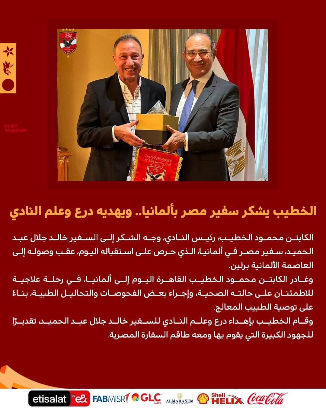الخطيب يشكر سفير مصر في ألمانيا ويهديه درع الأهلي