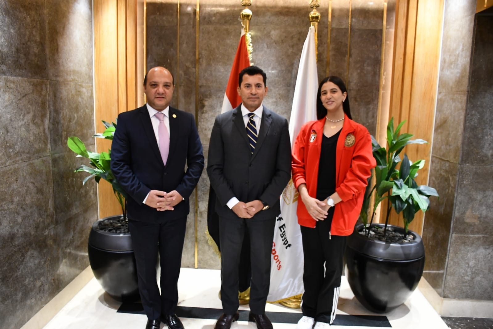 أشرف صبحي يستقبل لاعبة الجمباز حبيبة مرزوق بعد تألقها في بطولة العالم