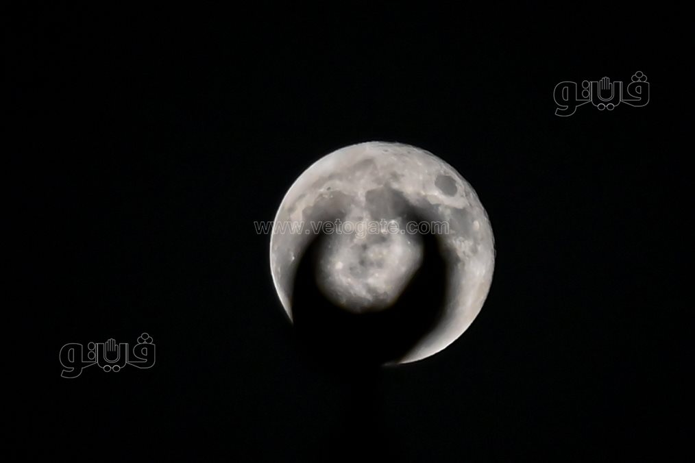 القمر الأزرق العملاق، ظهر القمر الأزرق العملاق كاملا أعلى هضبة أهرامات الجيزة، والتقطت عدسة “فيتو” صورا لمشهد اكتمال القمر أعلى هرم خوفو.