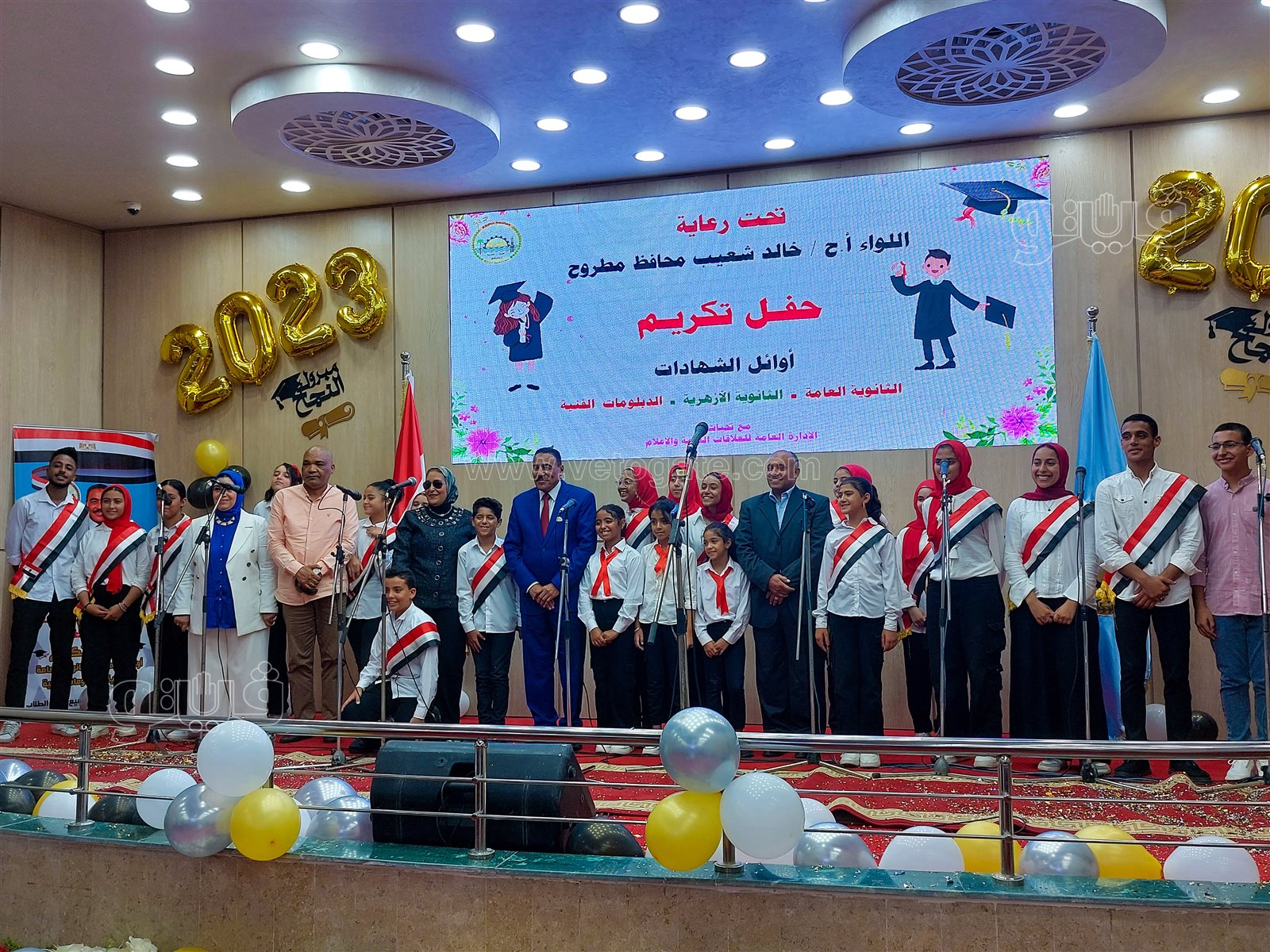 انطلق منذ قليل فعاليات حفل تكريم أوائل الشهادات الثانوية العامة والأزهرية والدبلومات الفنية، الذى تنظمه الإدارة العامة للعلاقات العامة والإعلام بديوان عام محافظة مطروح، تحت رعاية اللواء خالد شعيب محافظ مطروح.