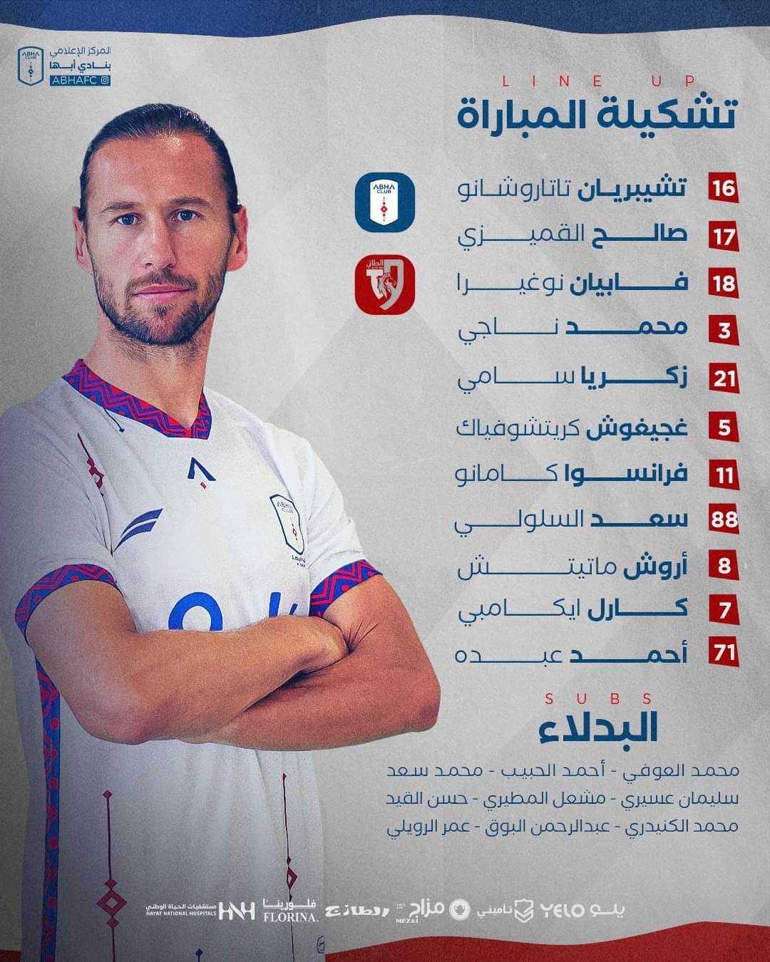 أعلن ريزتش مدير فني الطائي وكذلك مشينفيتش مدرب أبها عن تشكيل فريقيهما استعدادا لمواجهة اليوم.