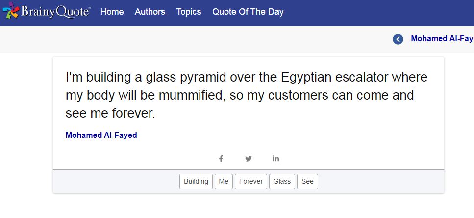 وأعلن محمد الفايد، في مارس من عام 2006 أنه أوصى بتحنيط جثمانه بعد وفاته واستخدام المومياء كعقرب من عقارب الساعة العملاقة التي تزين قمة متجر "هارودز" الرئيسي الكائن في منطقة نايتسبرج اللندنية الراقية.