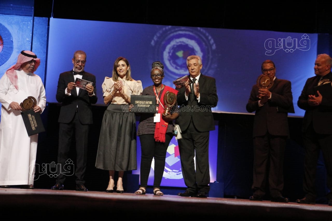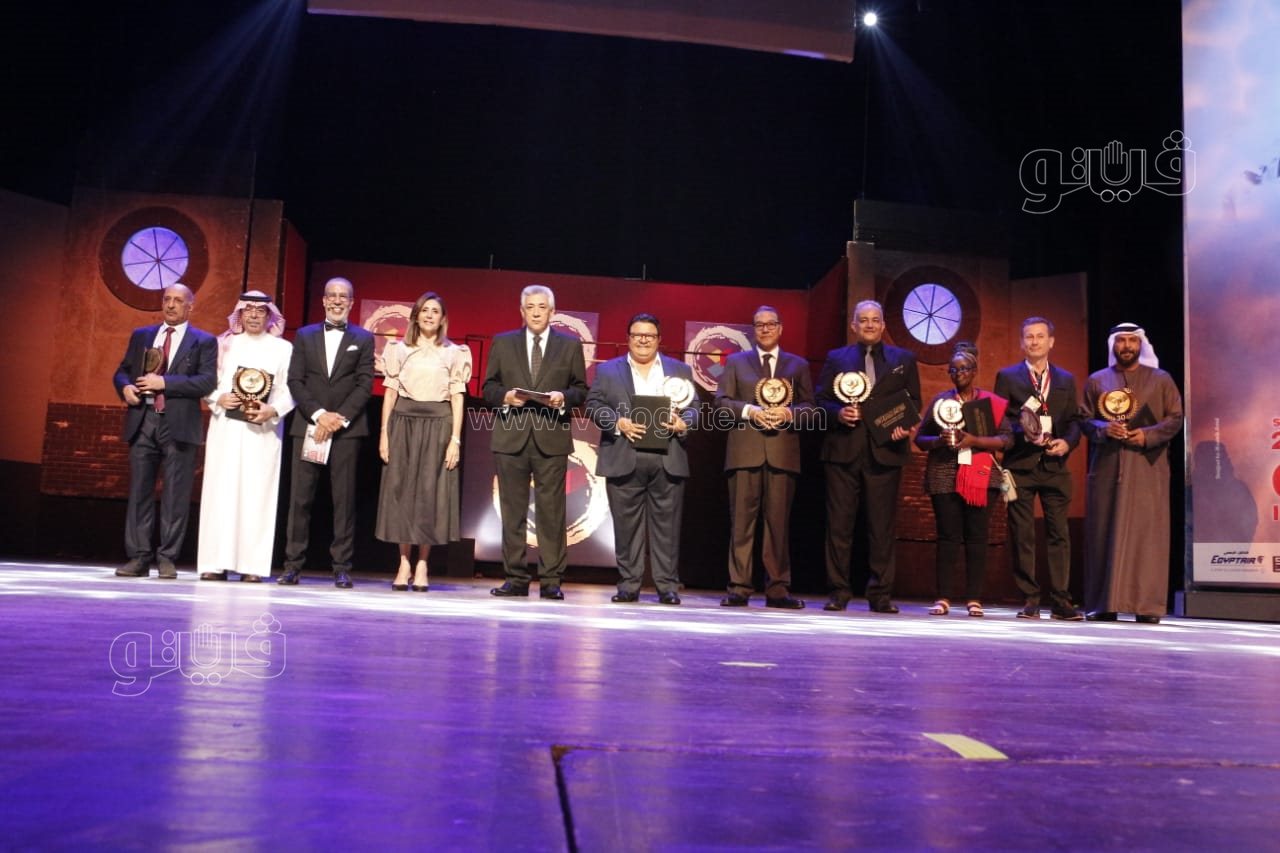 وسلمت وزيرة الثقافة شهادات التقدير ودروع المهرجان للمكرمين وهم من مصر المخرج خالد جلال والمخرج ناصر عبد المنعم، ومصمم الديكور حازم شبل، والناقد جلال حافظ.