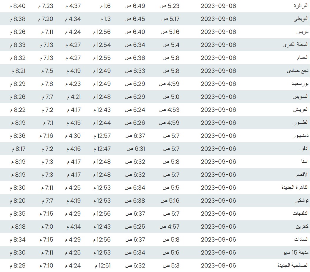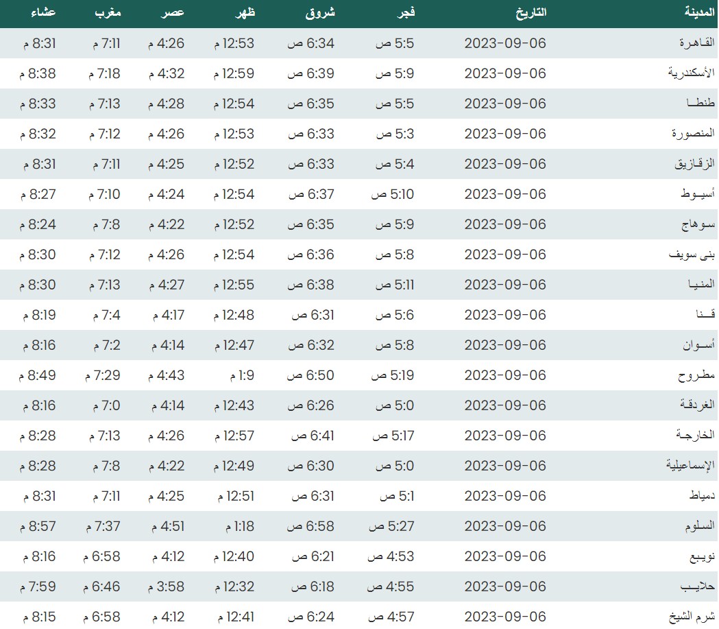 مواقيت الصلاة اليوم بتوقيت القاهرة