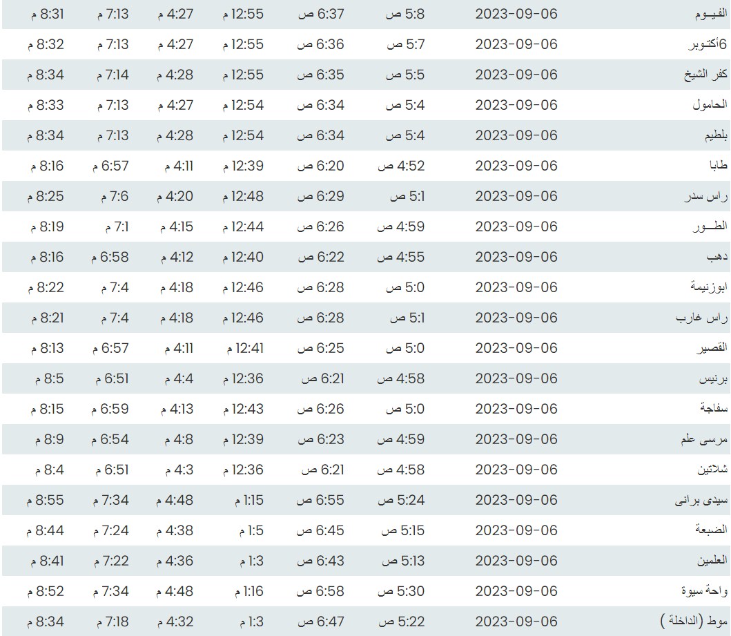 مواقيت الصلاة اليوم بتوقيت أسيوط