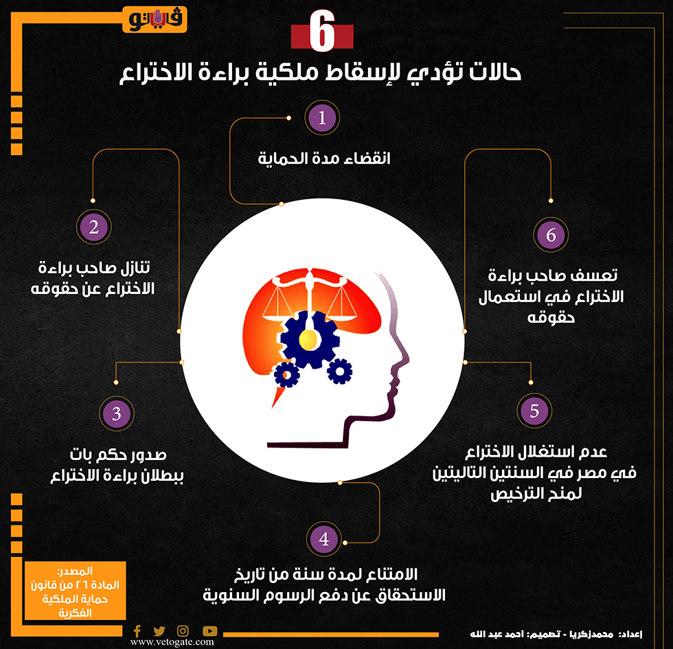 6 حالات تؤدي لإسقاط ملكية براءة الاختراع (انفوجراف)