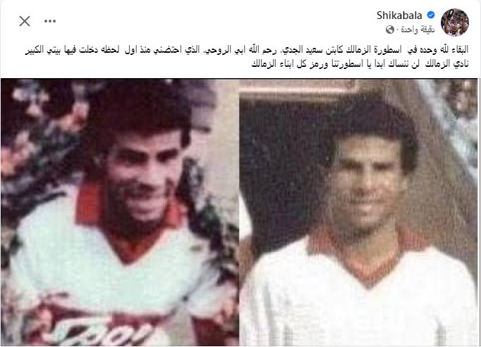 نعى محمود عبدالرازق “شيكابالا” صانع ألعاب الفريق الأول لكرة القدم بنادي الزمالك، وفاة سعيد الجدي نجم النادي السابق.