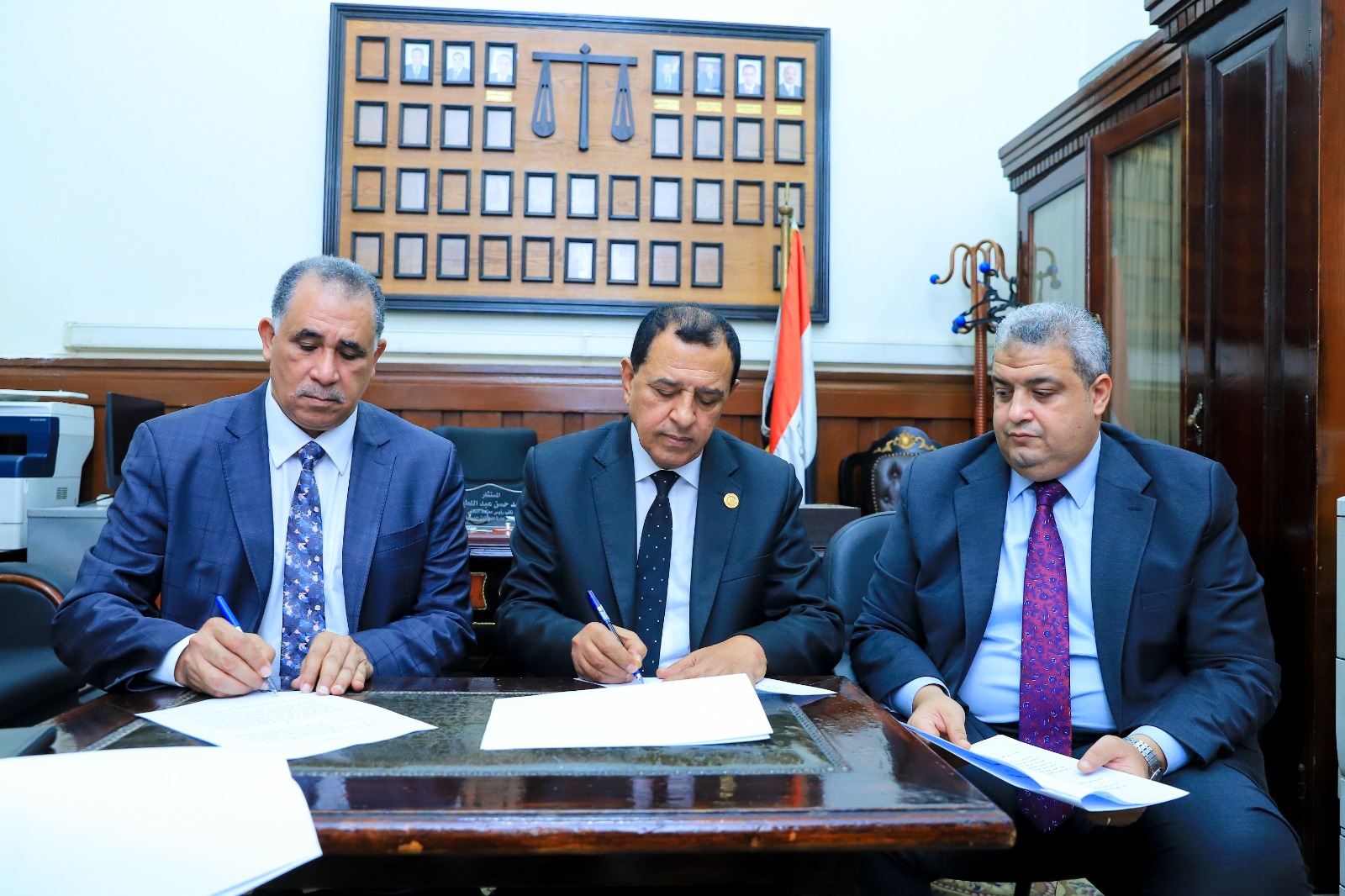 جاء ذلك خلال الاجتماع الذي جرى بين نقيب المحامين والمستشار أحمد رفعت، الأمين العام لمجلس القضاء الأعلى، والمستشار محمد حسني عبد اللطيف، رئيس إدارة العلاقات الدولية بالمحكمة، اللذين وقعا على البروتوكول ممثلين لمحكمة النقض، وفي حضور كل من محمود الداخلي، الأمين العام لنقابة المحامين، عبد المجيد هارون، أمين الصندوق، حازم طه، نقيب محامين الفيوم.