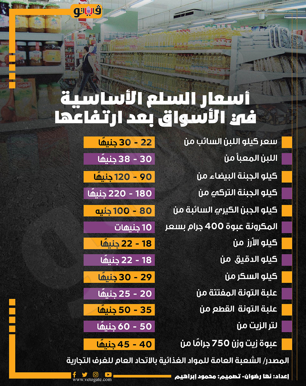 أسعار السلع الأساسية في الأسواق بعد ارتفاعها (إنفوجراف) السبت 02/سبتمبر/2023 - 10:08 م 9/2/2023 10:08:05 PM أسعار السلع الغذائية في الأسواق، فيتو نها رضوان شارك طباعة 18 حجم الخط شارك طباعة اتحاد العام للغرف التجارية أسعار السلع الغذائية اسعار السلع الاتحاد العام للغرف التجارية الجبن الجبنة الأرز العام للغرف التجارية اللبن السائب اللبن المعبأ المكرونة السلع الغذائية السكر الزيت كيلو الأرز كيلو اللبن كيلو اللبن السائب سعر كيلو اللبن سعر كيلو اللبن السائب مواد الغذاء