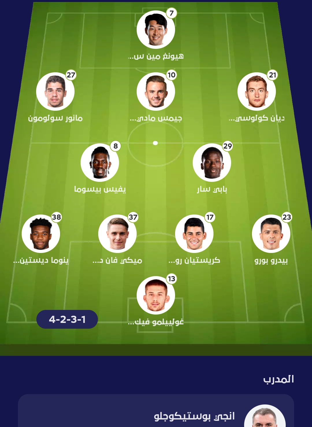 وكان بوستيكجولو المدير الفني لتوتنهام، أعلن تشكيل فريقه استعدادًا لمواجهة بيرنلي.