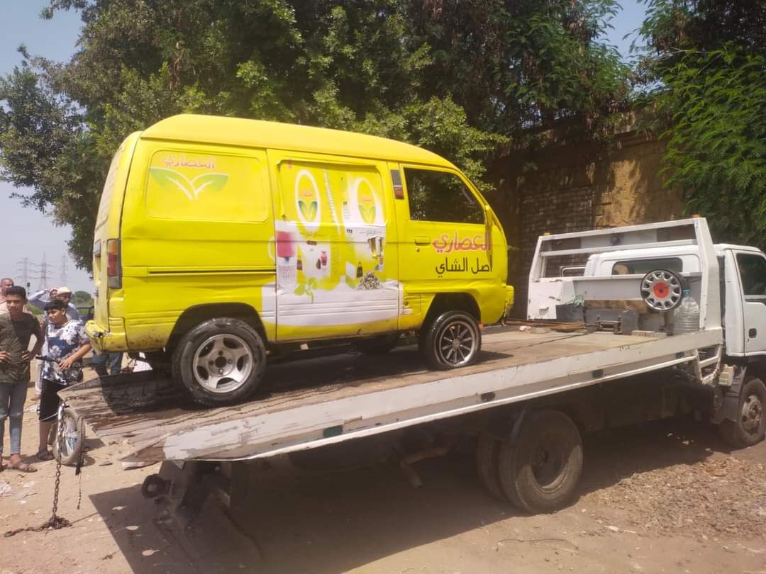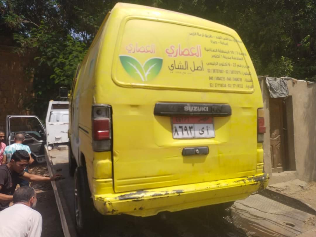انتشال سيارة سقطت بترعة أوسيم دون إصابات (صور)