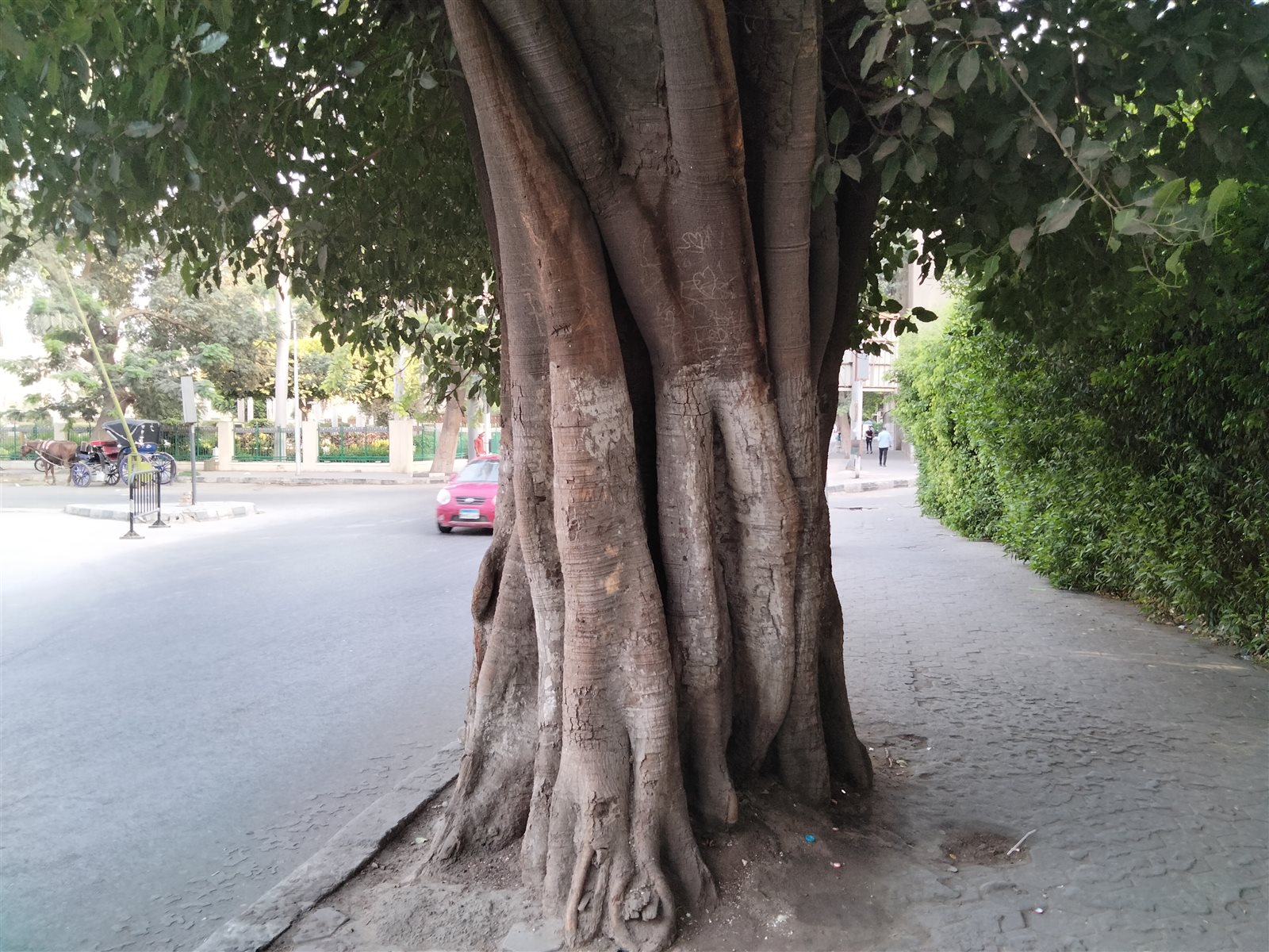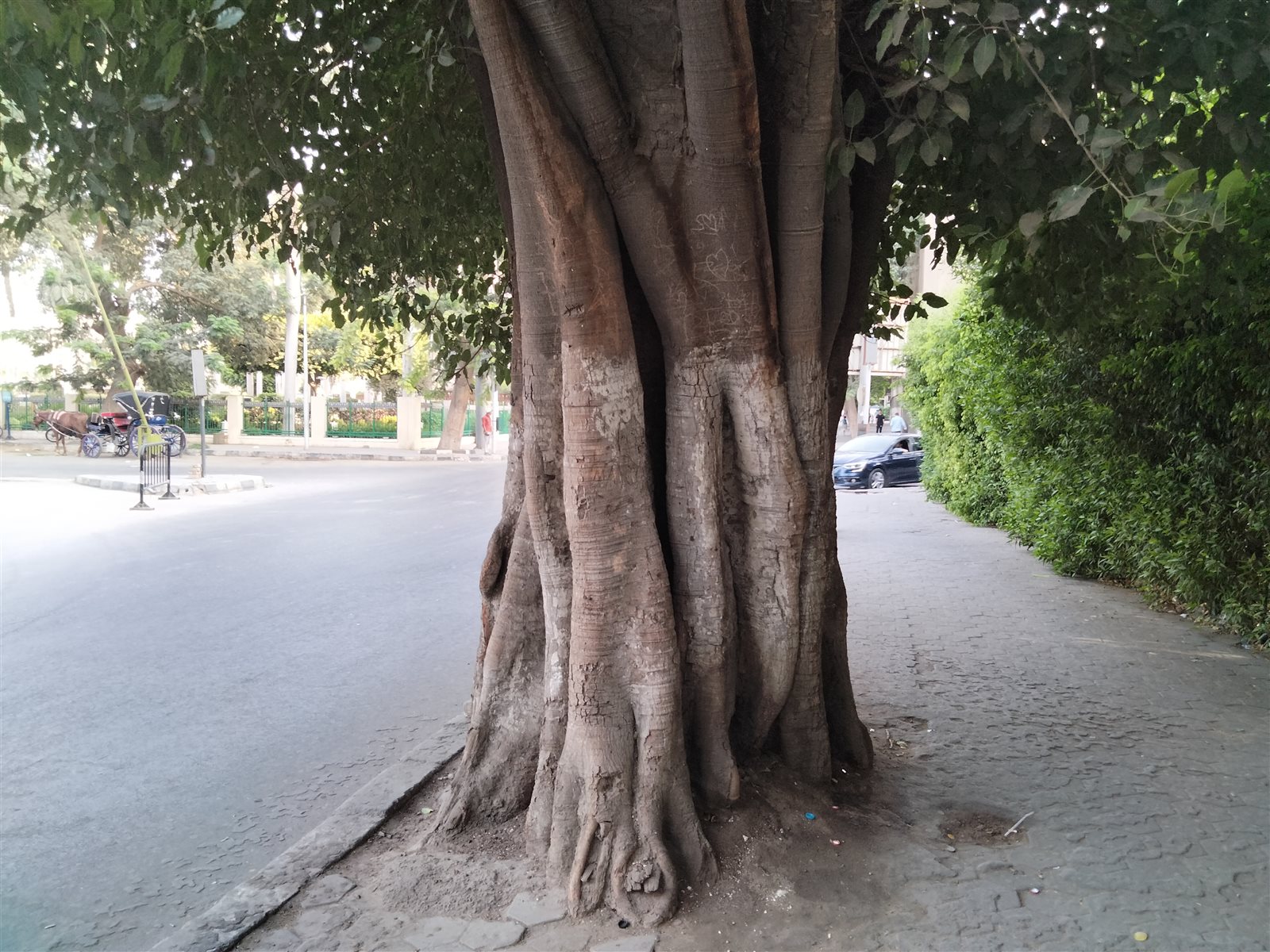 عنوة تحت ضغط وزنها الثقافي وسمعتها التاريخية جزء من شارع عمومي فباتت أشبه بفزاعة عصافير، فالشجرة التي تجاوز عمرها أكثر من 154 عامًا وتحظى بشهرة تستحقها نظرًا لمكانتها التاريخية واهتمام شعبي يليق بموقعها الجغرافي، حيث يتجمع مصريون وأجانب وسائحون حولها يوميًا لالتقاط الصور الى جانبها، ومنهم من يأتي ليحفر ذكرياته عليها، إذ تمتلئ جذوعها بأسماء وحروف وقلوب وذكريات الأصدقاء والمحبين نظرًا لشهرتها وندرتها.