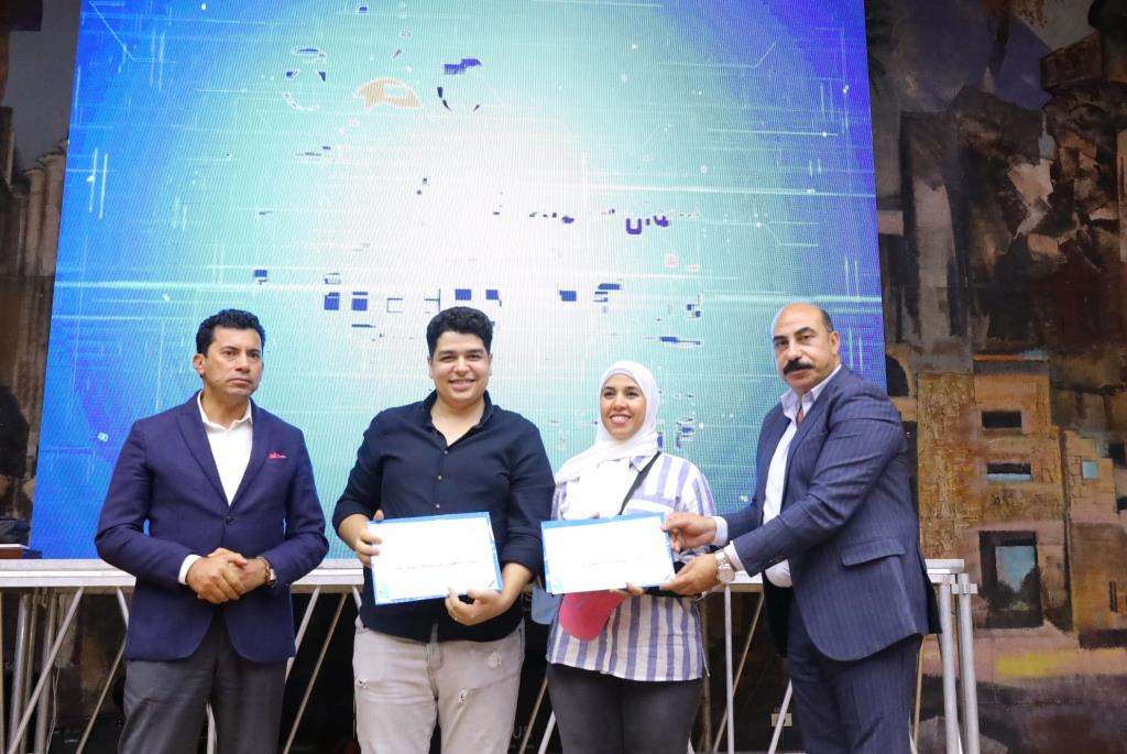 وخلال اللقاء قام وزير الشباب والرياضة ومحافظ أسوان بتسليم العديد من النماذج الشبابية الذين جسدوا قصص نجاح فى كافة المجالات الشبابية والرياضية شهادات تقدير، مع إلتقاط الصور التذكارية معهم.