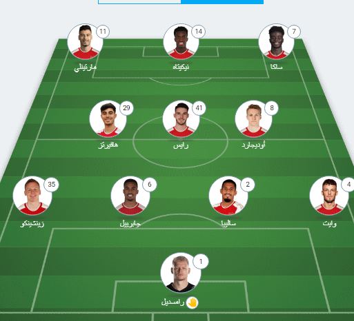 وجاء تشكيل أرسنال علي النحو التالي: