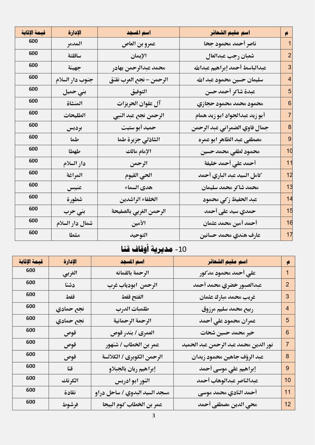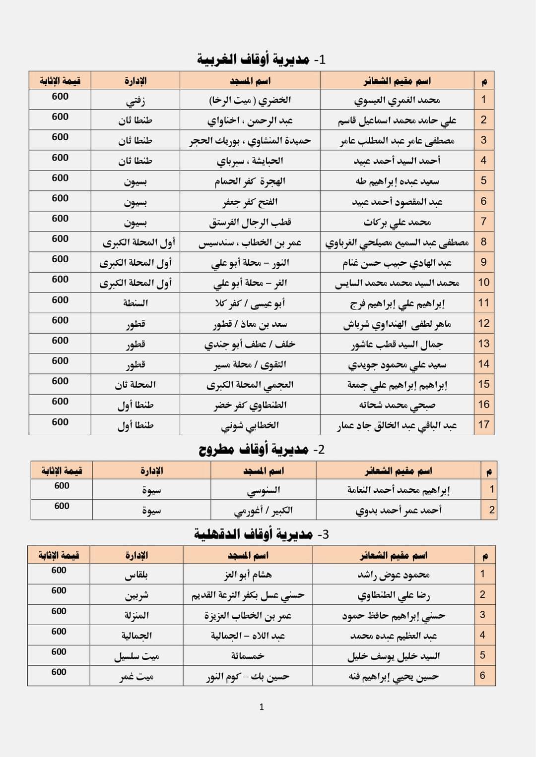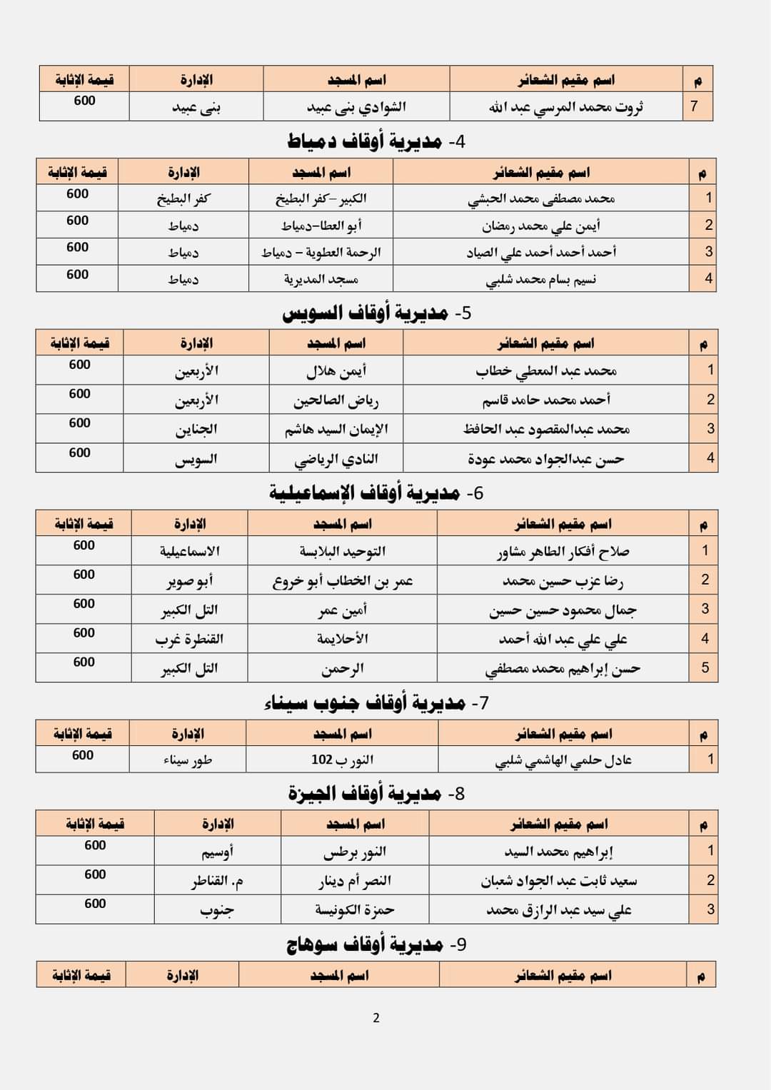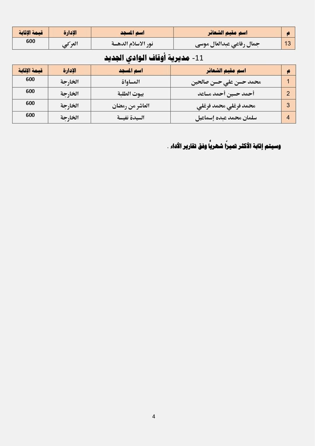 يأتي ذلك في إطار اهتمام وزارة الأوقاف بتكريم المتميزين الذين يؤدون عملهم بتفانٍ واجتهاد في خدمة بيوت الله (عز وجل)، وبناءً على تقارير المتابعة الميدانية الواردة من المديريات والإدارات المعنية على النحو التالي: