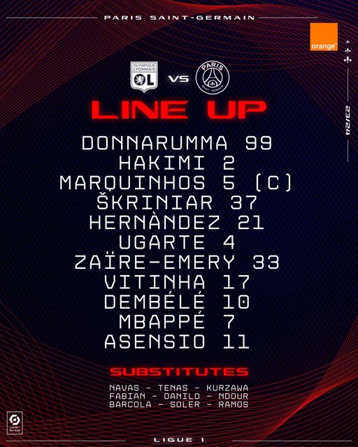 خط الدفاع: حكيمي، ماركينيوس، سكريناير، لوكاس هيرنانديز