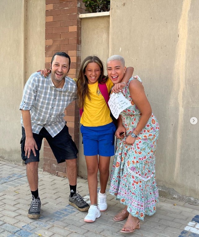 أسما شريف منير برفقة طليقها محمود السكري في أول يوم دراسة لابنتهما