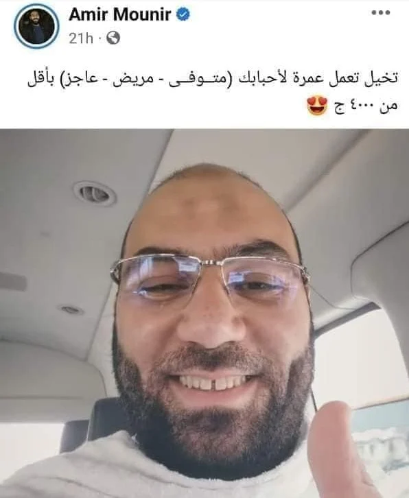 وفي الساعات الأخيرة شهدت مواقع التواصل الاجتماعي والشارع المصري حالة من الجدل، كان بطلها صانع المحتوى الديني "أمير منير"، وذلك بعد ترويجه لتطبيق "العمرة بالبدل"، والذي يتيح للإنسان أن ينيب أحد القائمين على التطبيق بعمل عمرة له أو لأحد أسرتة.