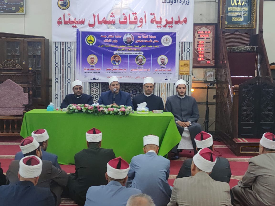 عقدت مديرية أوقاف شمال سيناء، أمسية دينية بحضور الدكتور هشام عبد العزيز علي رئيس القطاع الديني، والدكتور نوح عبد الحليم العيسوي المر رئيس الإدارة المركزية لشئون مكتب الوزير، والدكتور عمرو مصطفى مدير عام المتابعة والتقييم، والشيخ محمود مرزوق مدير مديرية أوقاف شمال سيناء، حيث تحدث الجميع حول موضوع: (الإخلاص في القول والعمل).