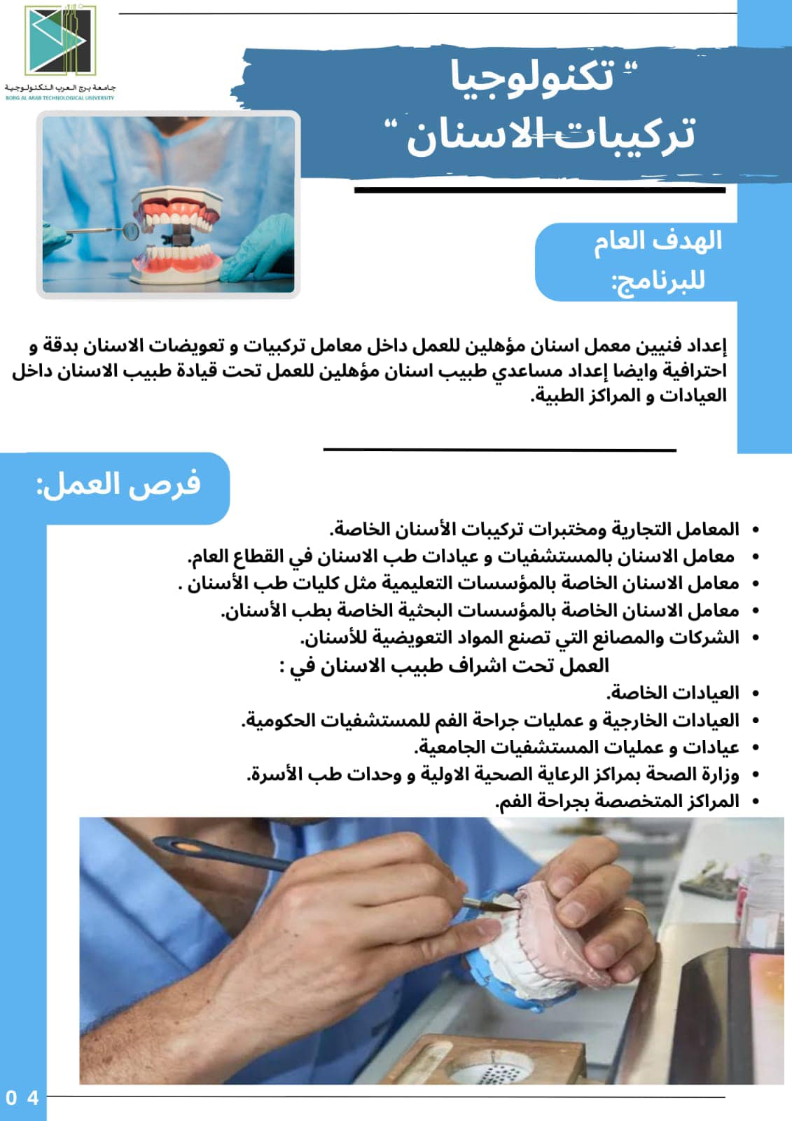 ٢-برنامج تكنولوجيا تركيبات الأسنان.