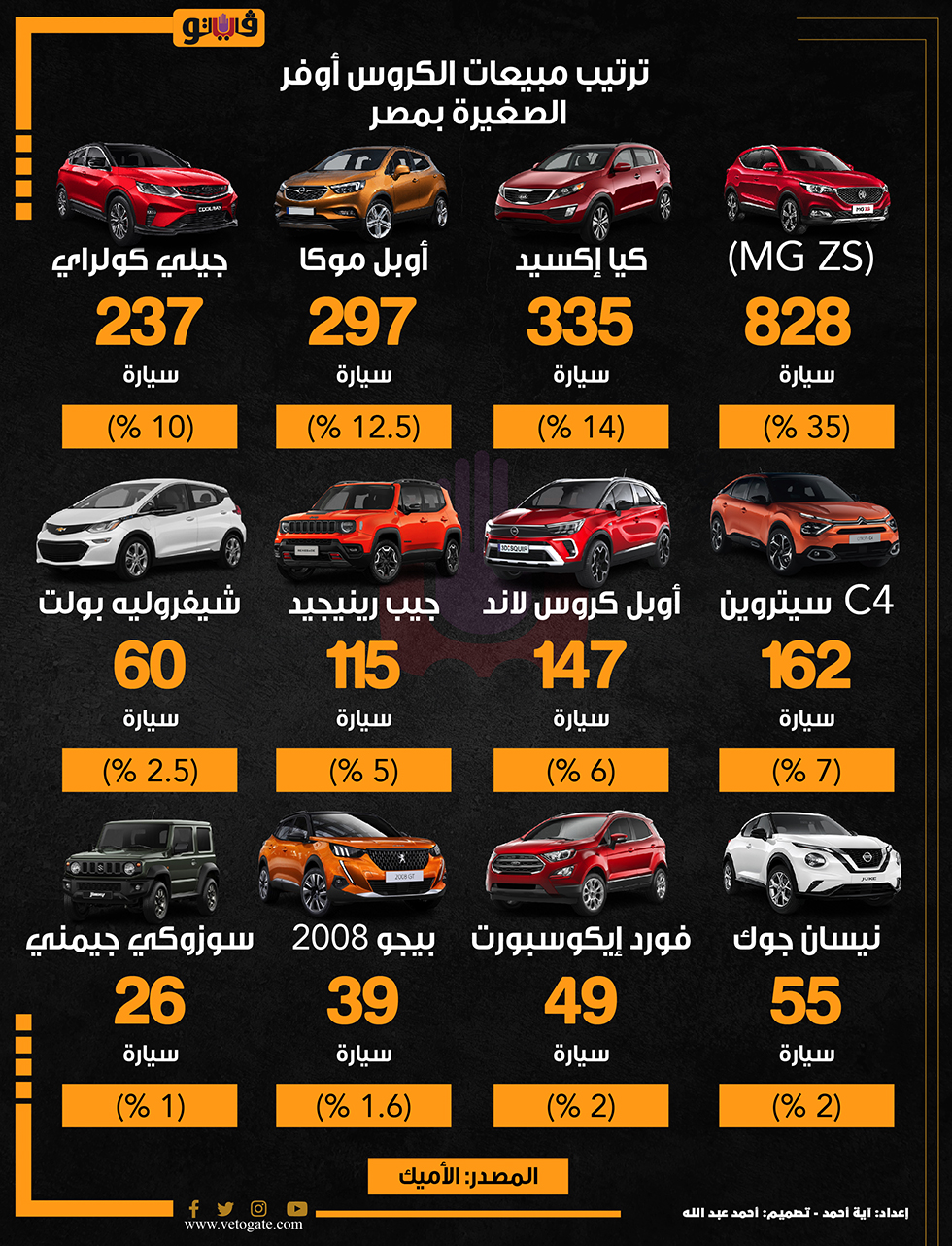 ترتيب مبيعات الكروس أوفر الصغيرة بمصر (إنفوجراف) الإثنين 02/أكتوبر/2023 - 12:53 م 10/2/2023 12:53:59 PM سيارات آية أحمد شارك طباعة 18 حجم الخط شارك طباعة السيارات الكروس اوفر اوبل كروس لاند الكروس أوفر سوزوكي جيمني سيارات الكروس اوفر سيارات الكروس سوزوكي جيب رينيجيد