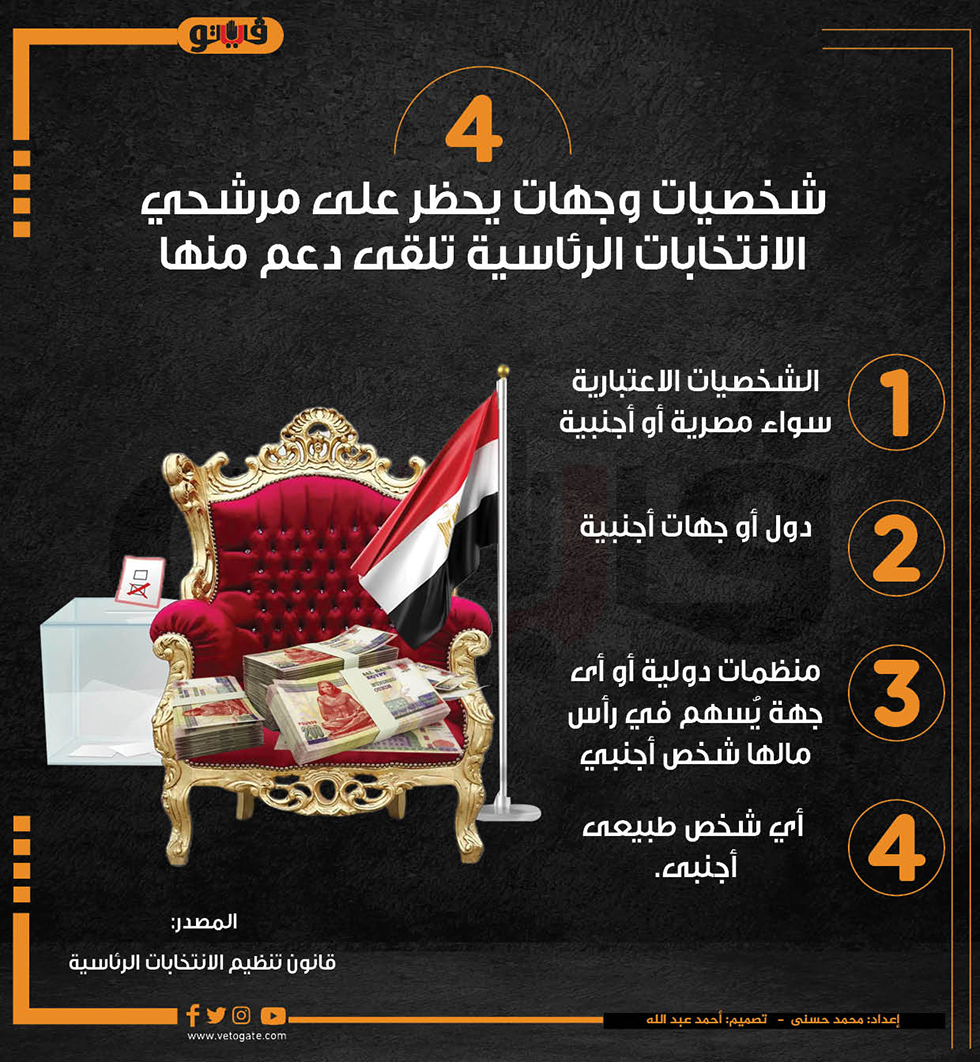 4 شخصيات وجهات يحظر على مرشحي الانتخابات الرئاسية تلقى دعم منها (إنفوجراف)