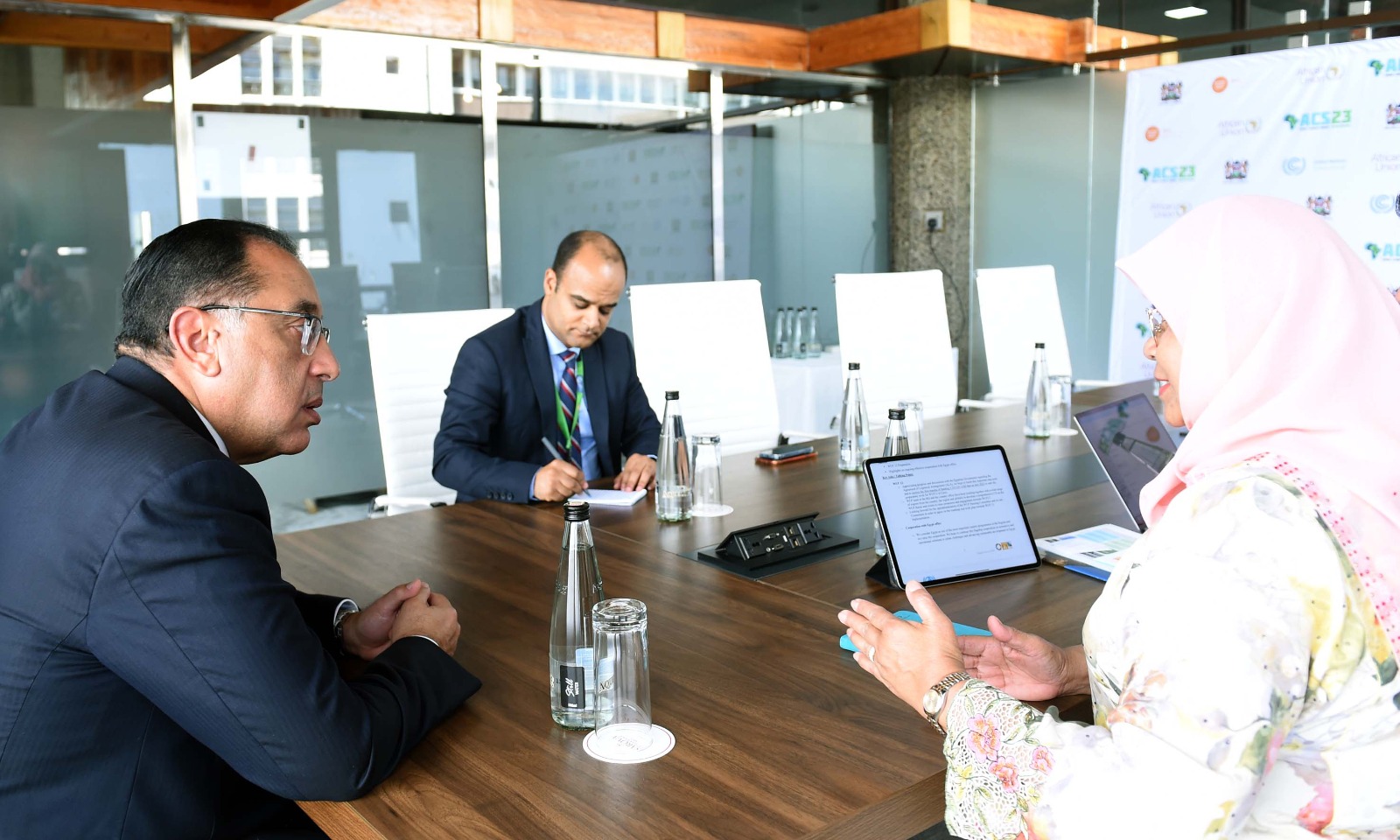 وخلال اللقاء، توجه رئيس الوزراء بالتهنئة لـ ميمونة محمد على قيادتها المتميزة لبرنامج الأمم المتحدة للمستوطنات البشرية، ونجاحها في تحويل العجز المالى إلى فائض، فضلًا عن إعادة هيكلة الهابيتات بطريقة مكنتها من تعزيز أنشطتها.