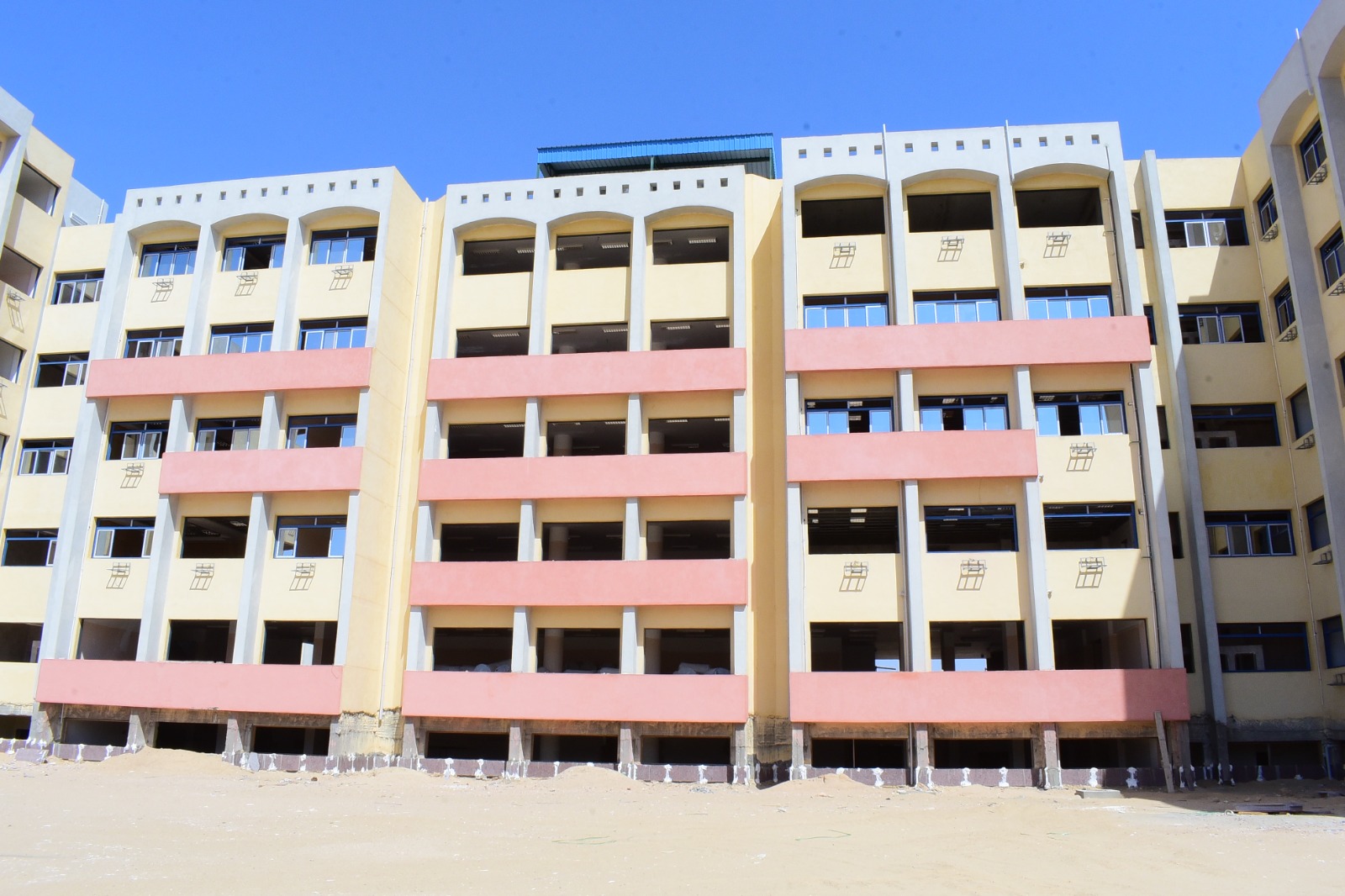 وأشار المهندس حسين محمدين إلى أن المبنى يقام على مساحة ٦ آلاف م٢، ويتكون من بدروم وأرضي و٤ أدوار، ويضم ٣ مدرجات سعة كل مدرج ٥٠٠ طالب وطالبة، إلي جانب ٨ عيادات وفصول دراسية وقاعات متعددة الأغراض وغرف إدارية وخدمات.