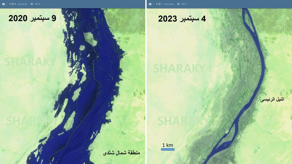 وتابع: "هذا لم يحدث في التاريخ حتى في سنوات الجفاف، وتعاني معظم المناطق على طول النيل الأزرق والرئيسي شمال الخرطوم من انخفاض ايراد النيل كما توضح الصور الفضائية بين الخرطوم وسد مروى (ولاية نهر النيل) مما أثر في ملايين المزارعين الذين يعتمدون على الزراعة الفيضية".