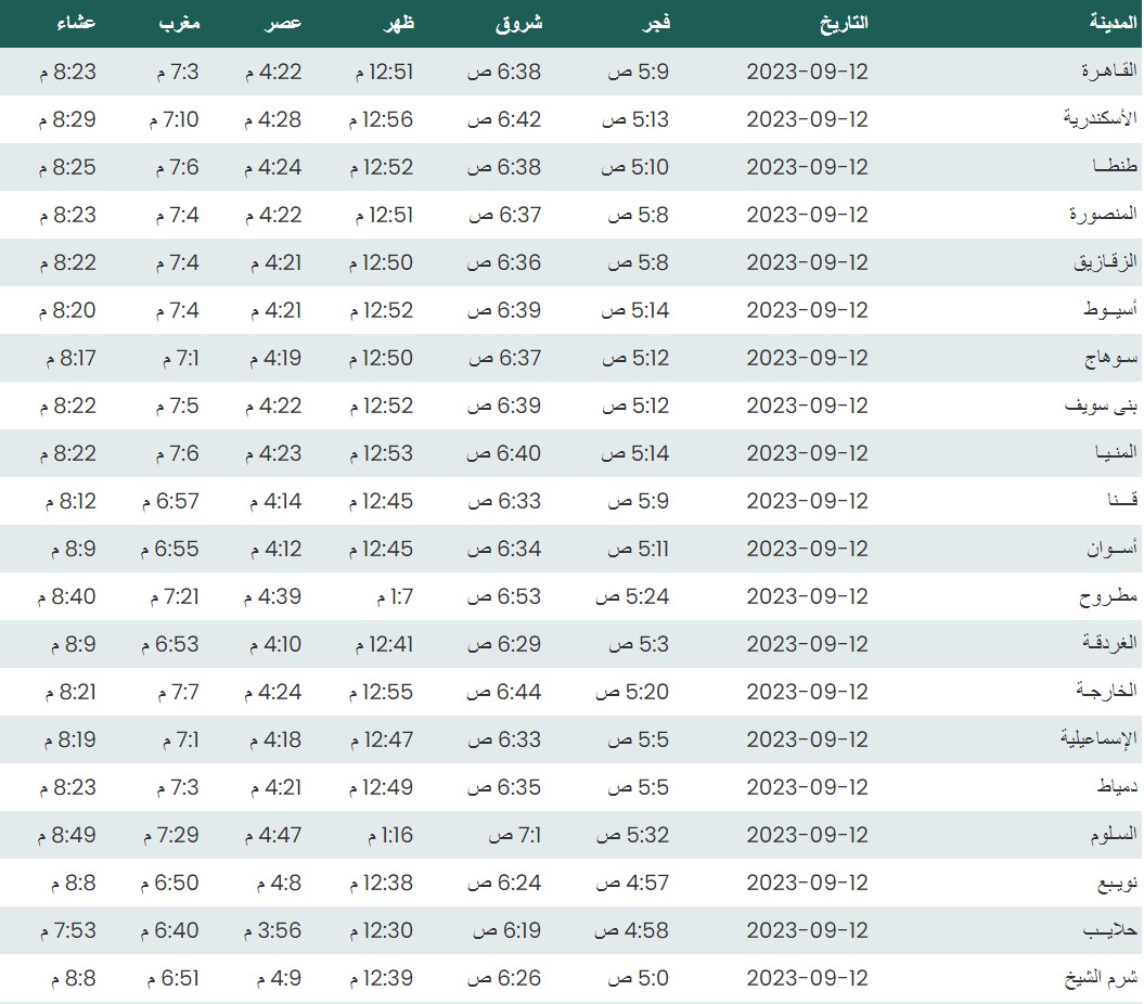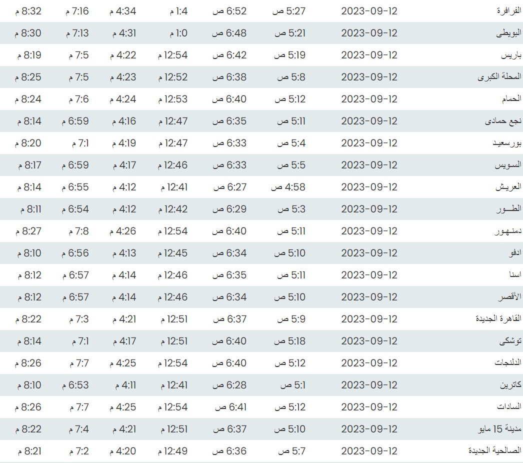 مواقيت الصلاة اليوم بتوقيت القاهرة