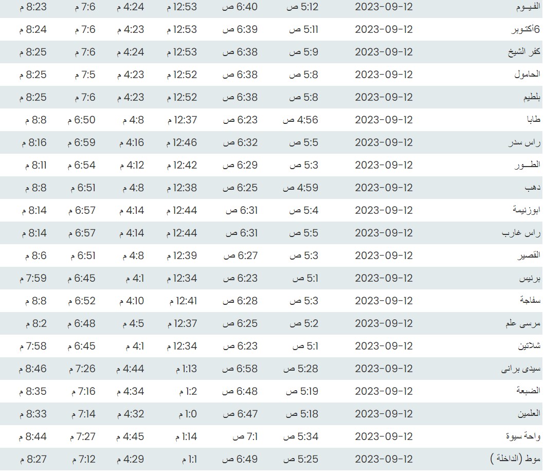 مواقيت الصلاة اليوم بتوقيت أسيوط