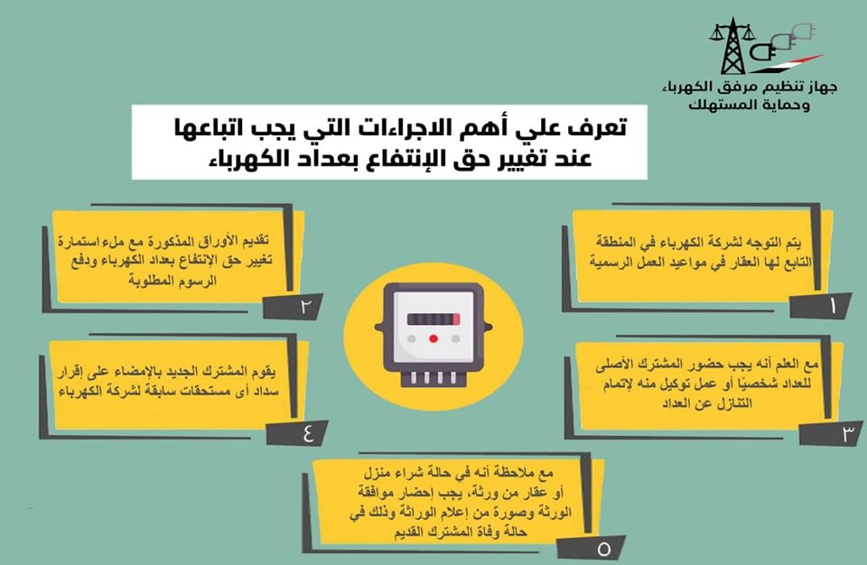 إجراءات تغيير حق الانتفاع لعدادات الكهرباء