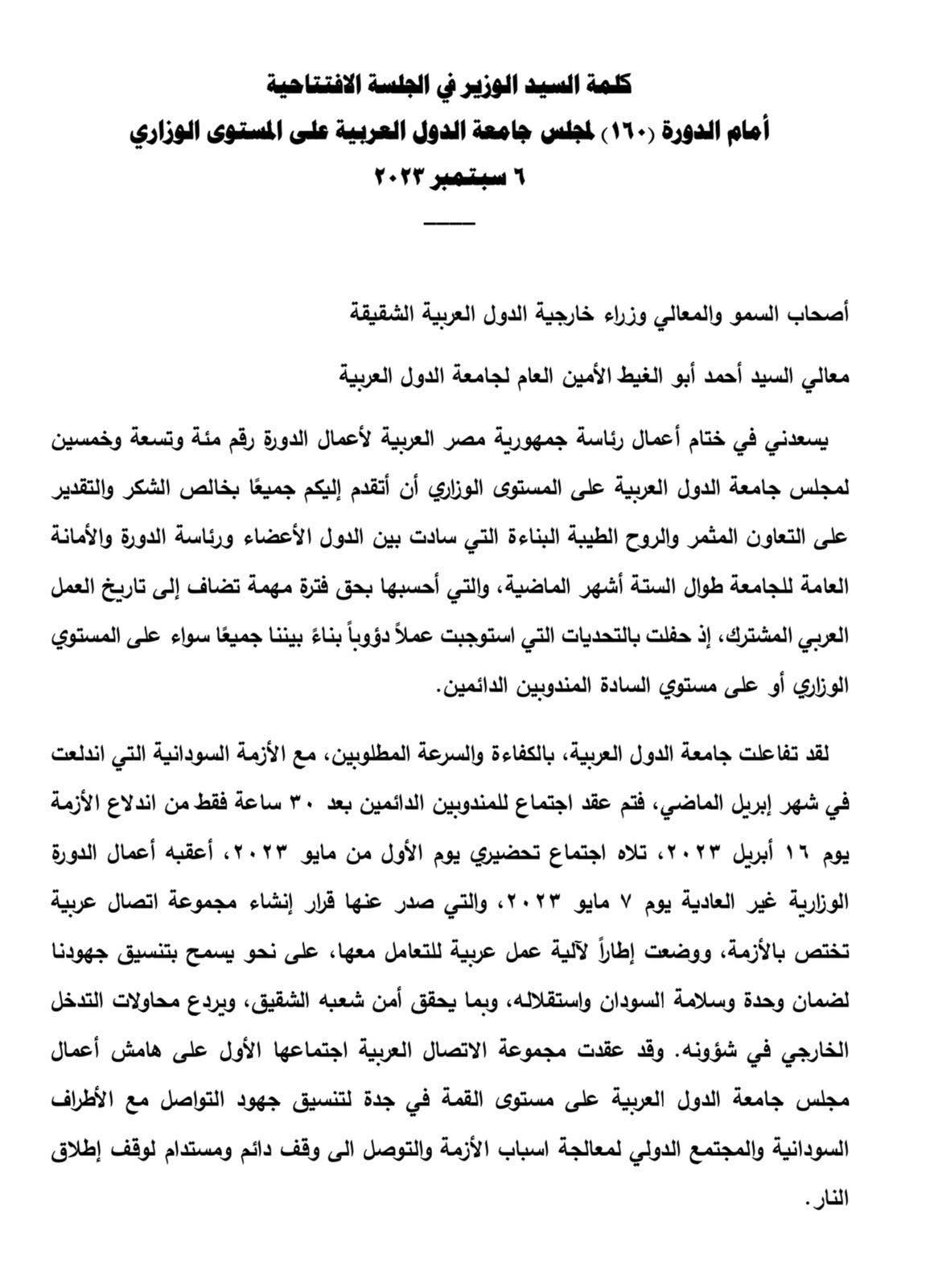 جاء ذلك خلال كلمته اليوم فى اجتماع مجلس جامعة الدول العربية على مستوى وزراء الخارجية.