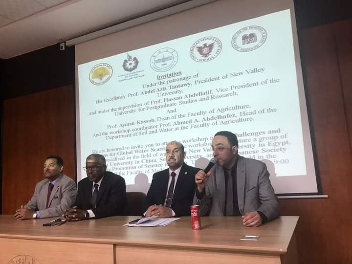 نظمت كلية الزراعة جامعة الوادي الجديد، ورشة عمل حول تحديات وحلول ندرة المياه العالمية بمشاركة جامعة الوادي الجديد بمصر، وجامعة لانزو بالصين، وجامعة صوفيا اليابانية، والجمعية اليابانية لتعزيز العلوم باليابان، وشارك بالورشة الاستاذ الدكتور سيد سلامة، قسم الصحة المهنية والبيئية، كلية الصحة العامة، جامعة لانزو الصين.