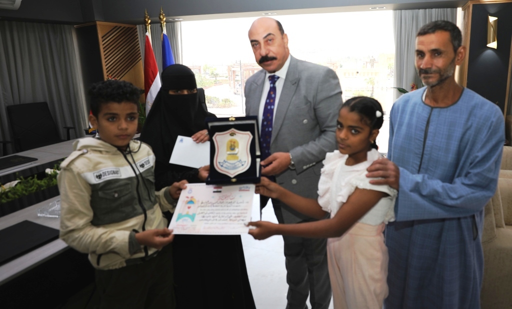 محافظ أسوان يكرم أسرة عامل بالوحدة المحلية توفى أثناء إصلاح كشافات الإنارة (صور)