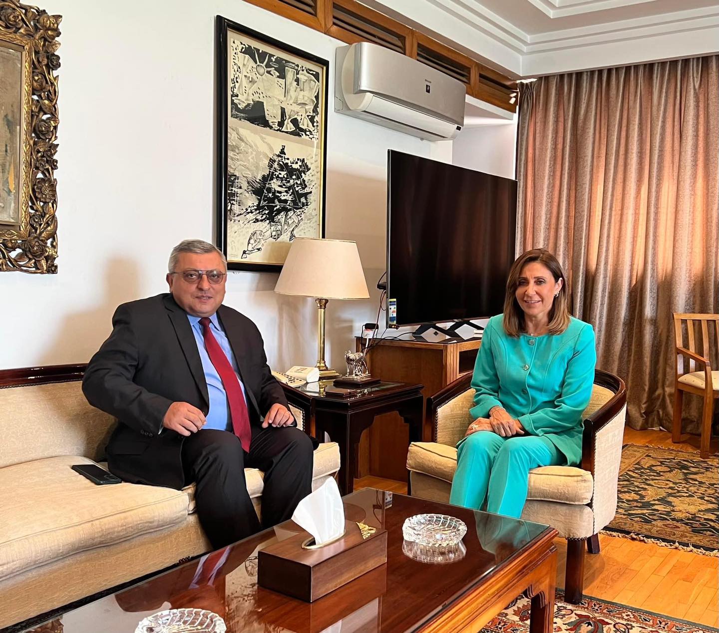 سفير أرمينيا يلتقى نيفين الكيلاني لبحث زيادة التعاون فى المجالات الثقافية