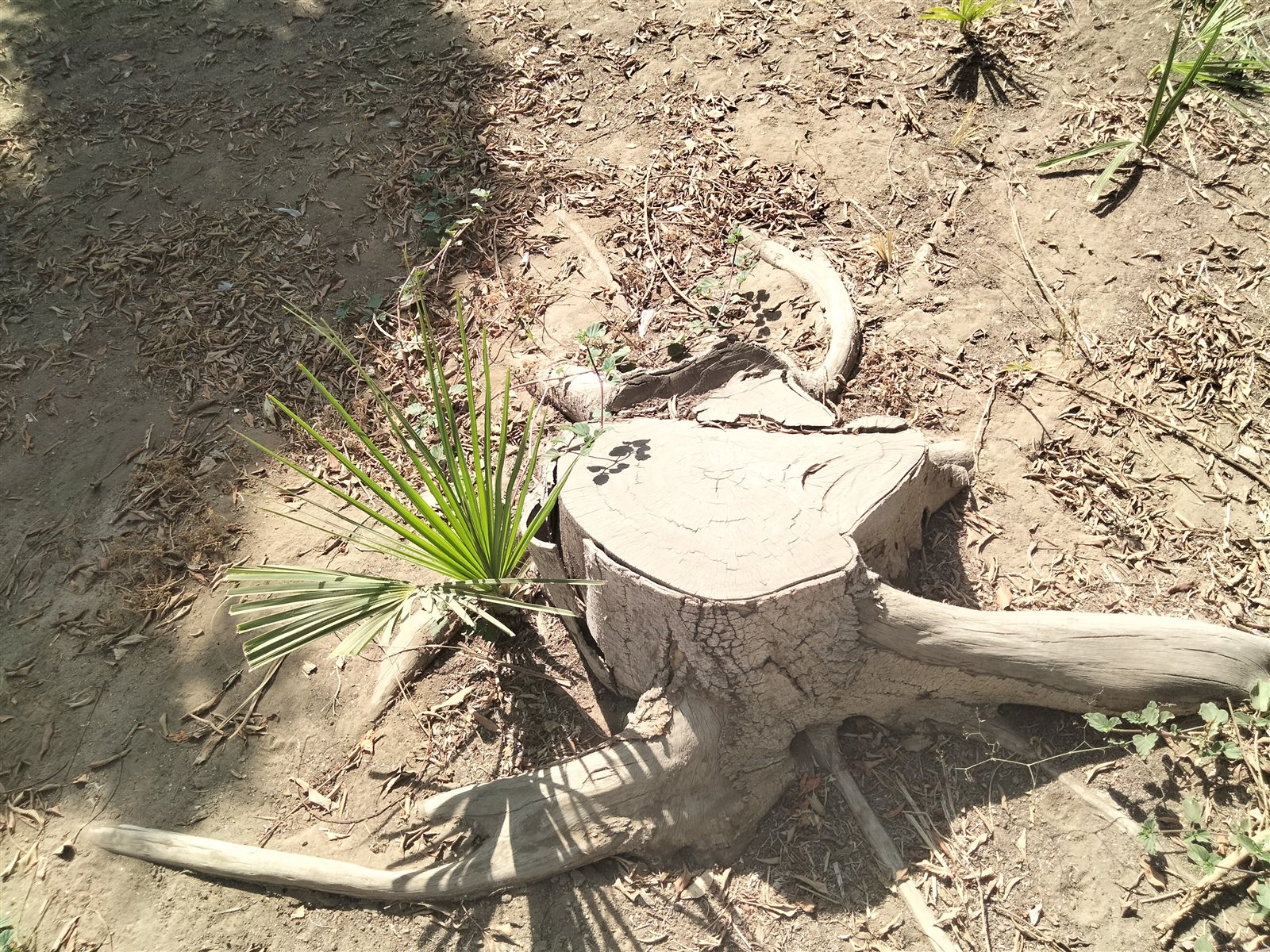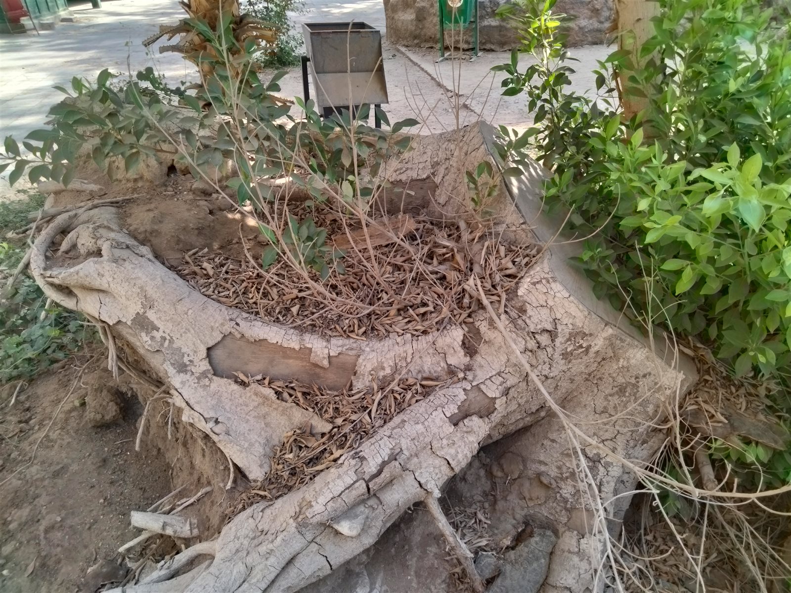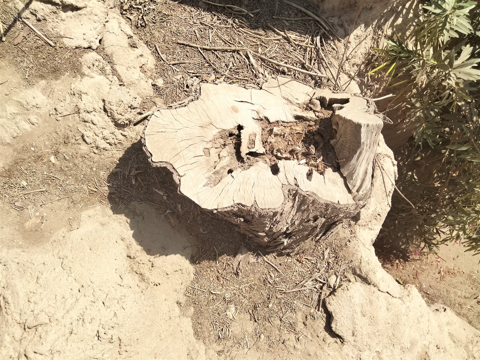 وعن جذوع الأشجار القديمة والتي يُبين من أثرها أنها قطعت بتصرف إنساني أجاب" أنا شغال هنا ليا 20 سنة، من أول منا جيت وهما كدا، بشوف الجذوع دي مقطوعة ".