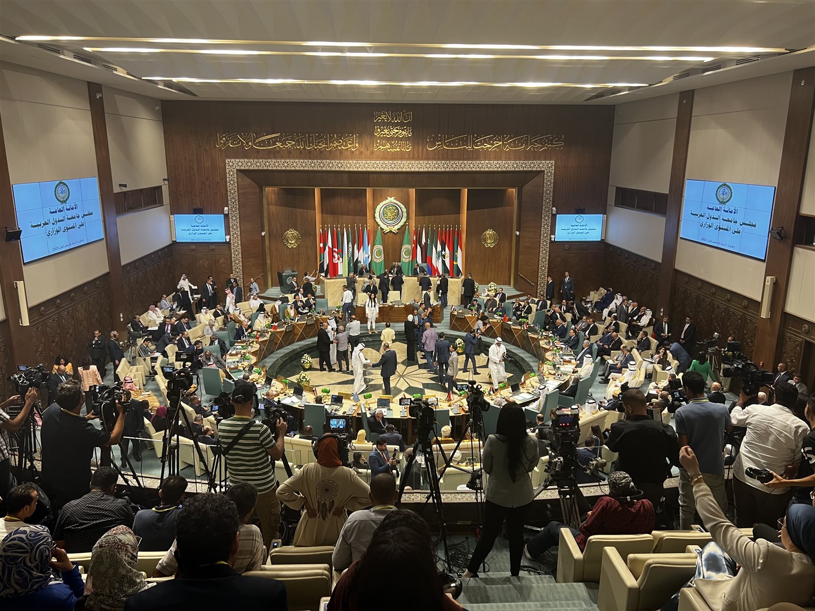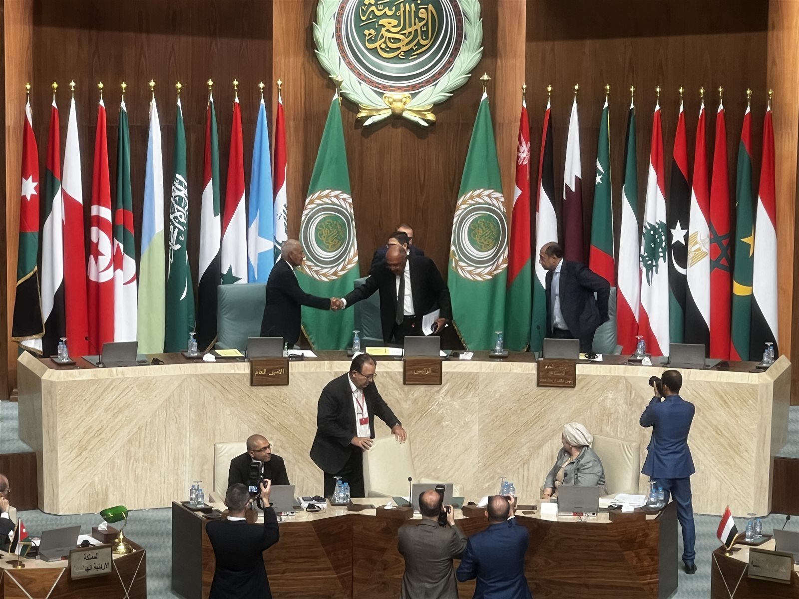 واستطرد: أحسب أن الجامعة العربية قد نجحت خلال الشهور الماضية في التحرك، على أكثر من صعيد، من أجل تعزيز شراكاتها مع القوى الدولية المختلفة باعتبار أن هذه الشراكات تُمثل رصيدًا استراتيجيًا مهمًا لدولنا.. وأُشير في هذا الصدد، على سبيل المثال، إلى القمة العربية الصينية الأولى التي استضافتها المملكة العربية السعودية في ديسمبر الماضي.. وأخيرًا وليس آخرًا، الدورة الثالثة للحوار العربي الياباني التي انعقدت بالأمس.. ونتطلع في نوفمبر القادم إلى القمة العربية الافريقية التي تستضيفها المملكة العربية السعودية، باعتبارها خطوة ضرورية وفي وقتها لترسيخ العلاقات مع شركائنا وأصدقائنا في أفريقيا التي تموج بتحولات نتابعها جميعًا.