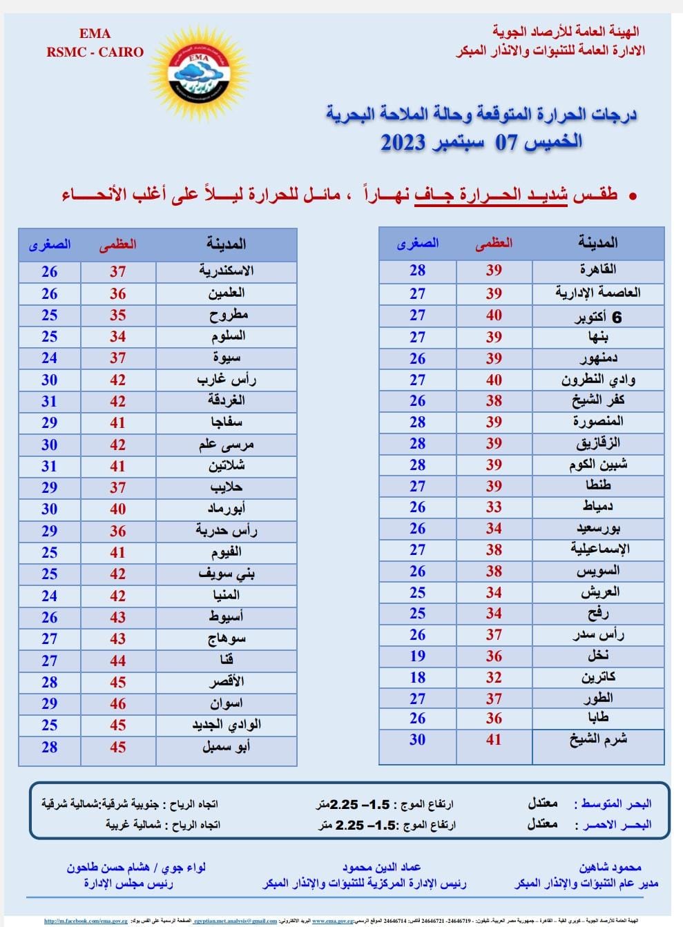 الوجه البحري: العظمى 39 الصغرى 28