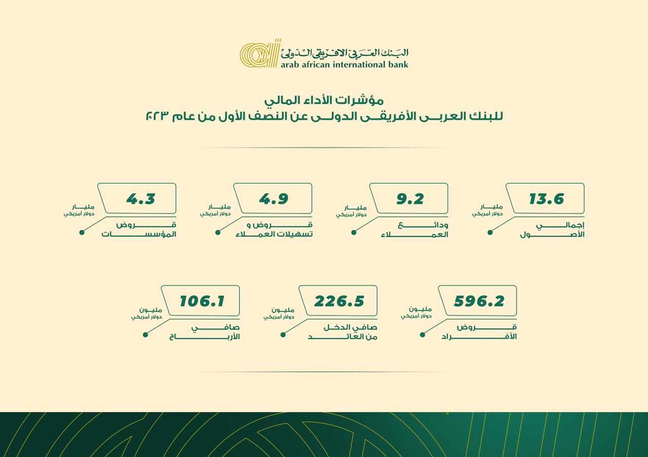 وأظهرت القوائم المالية المستقلة للبنك العربي الأفريقي الدولي عن تحقيق صافي أرباح بقيمة 106.1 مليون دولار أمريكي في النصف الأول من عام 2023.
