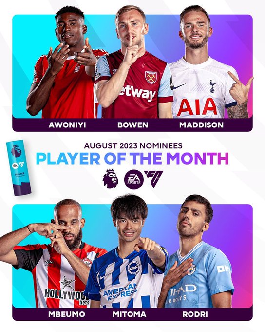 والمرشحين لجائزة أفضل لاعب في شهر أغسطس بالدوري الإنجليزي هم: