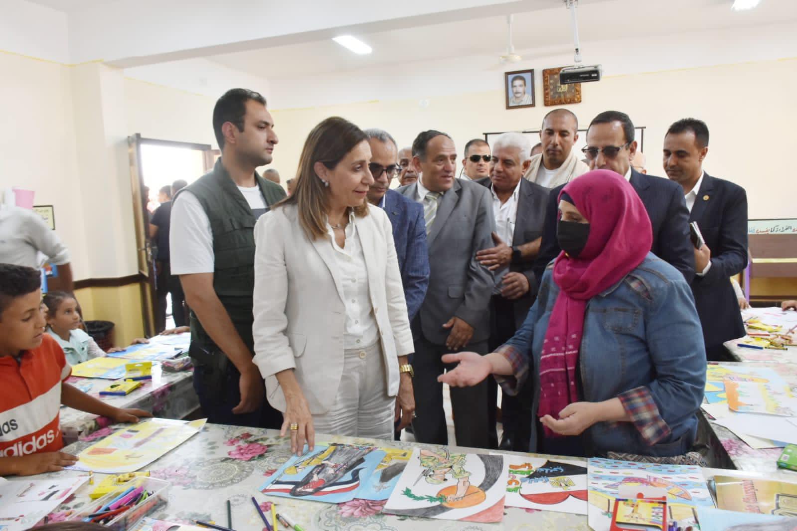وافتتحت معرضًا للحرف اليدوية للمرأة السيناوية والحرف البيئية،وتفقدت عددًا من ورش الحرف التراثية والفنون التشكيلية للأطفال، وأشغال النحاس عن البيئة السيناوية، كما شهدت فقرة فنية لرقصات سيناوية، ورقصات تُعبر عن مدن القناة، قدمها مجموعة من أطفال الشيخ زويد.