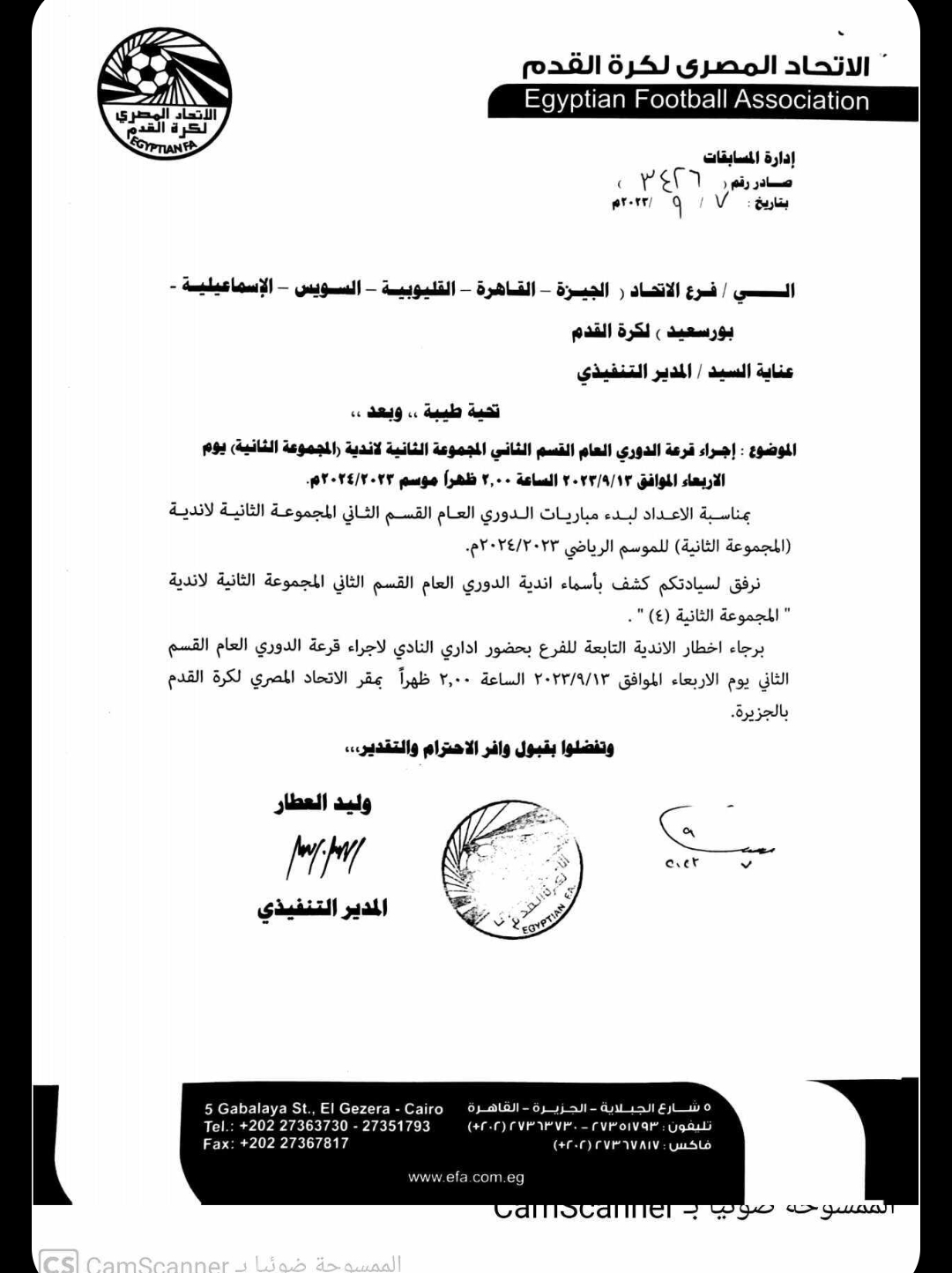 ويشارك في المجموعة الثانية أندية أفرع (الجيزة، القاهرة، القليوبية، السويس، الإسماعيلية، بورسعيد)، علي أن يكون الحضور الأربعاء المقبل في الثانية ظهرًا في مقر الاتحاد المصري لكرة القدم.