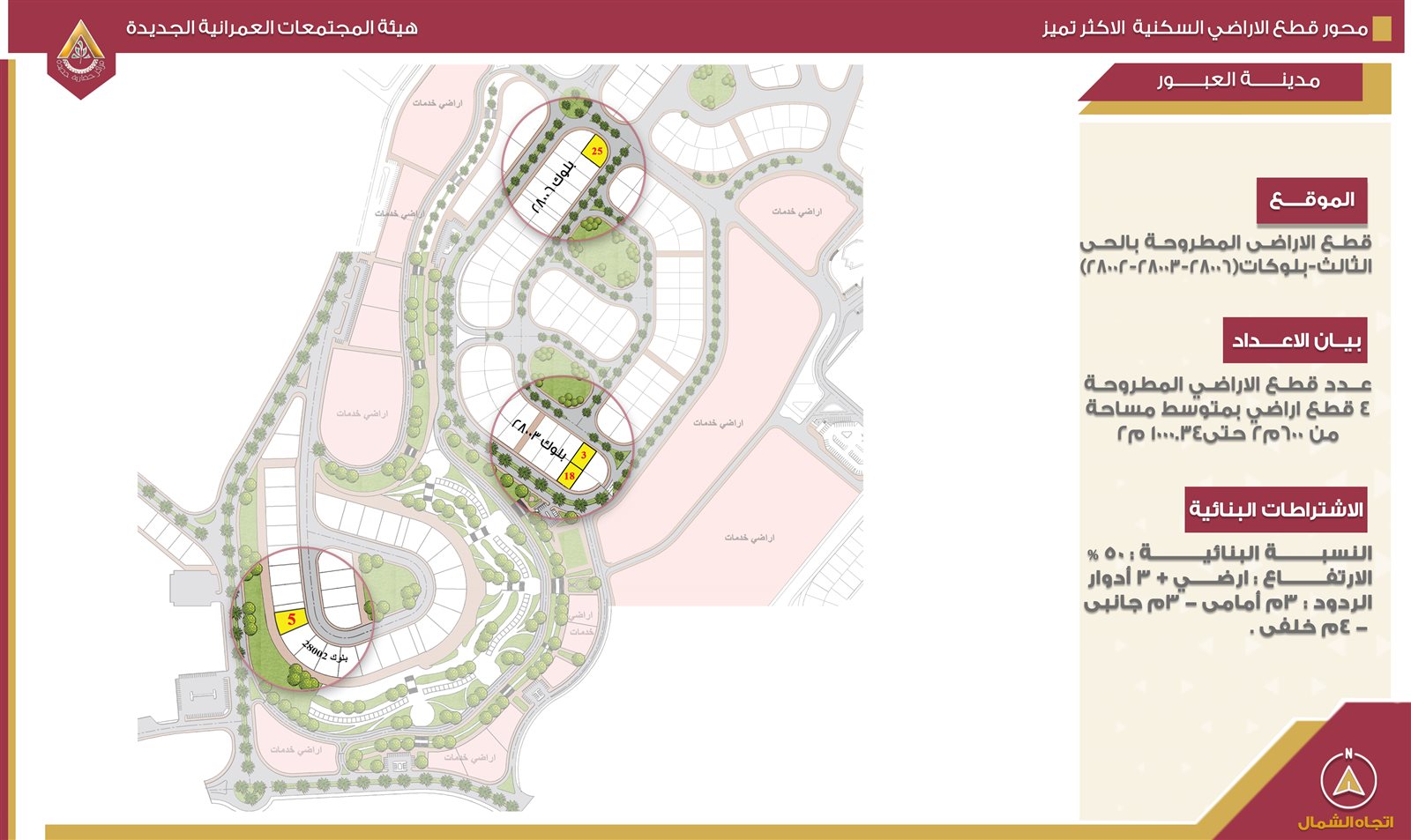 تطرح وزارة الإسكان عددا من قطع الأراضى الأكثر تميزا بمدينة العبور ضمن الطرح الثالث لبرنامج مسكن لأراضى الأفراد.