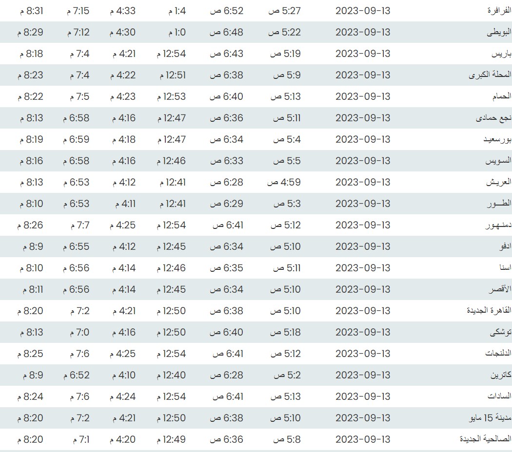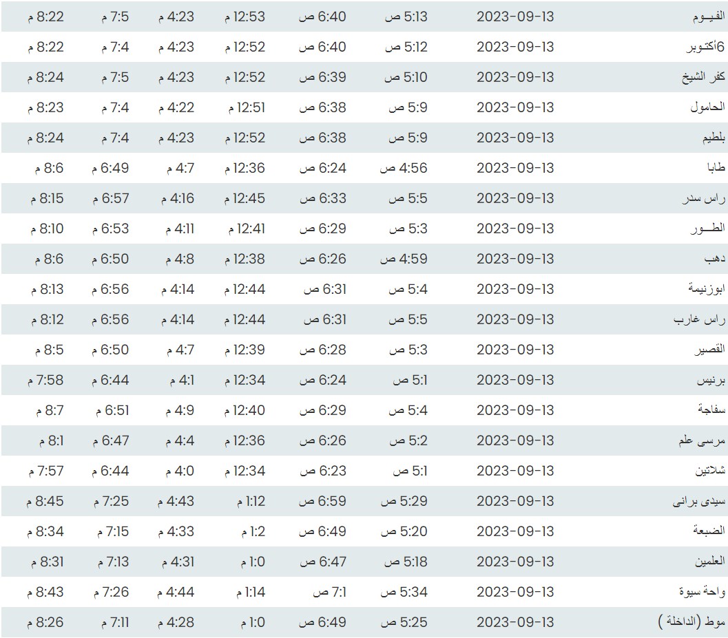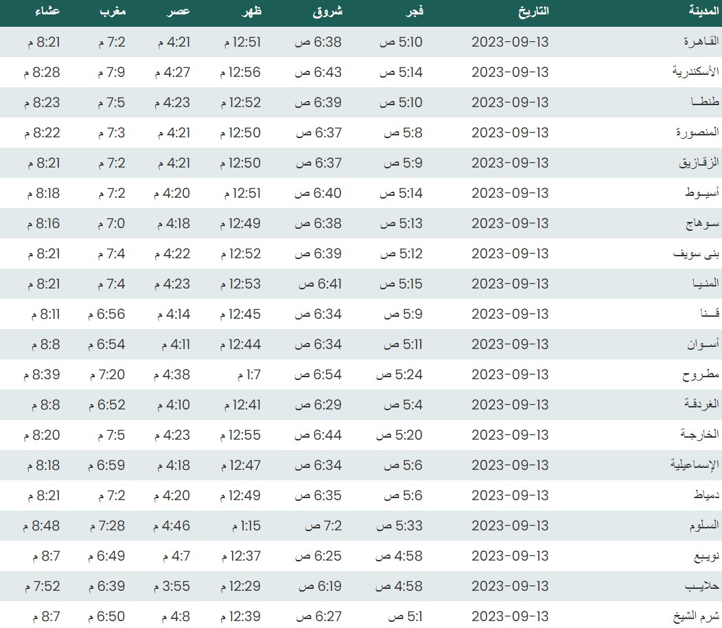 مواقيت الصلاة اليوم بتوقيت القاهرة