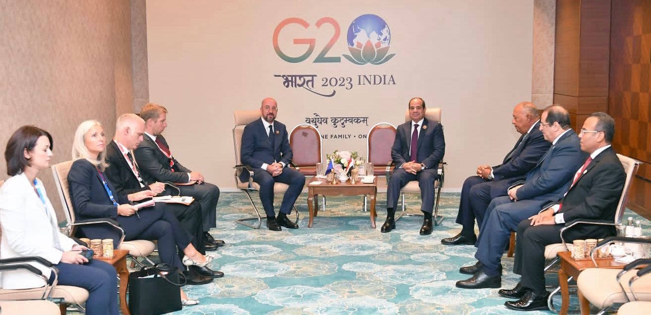 كما التقى الرئيس عبد الفتاح السيسي اليوم مع شارل ميشيل، رئيس المجلس الأوروبي، وذلك على هامش انعقاد قمة مجموعة العشرين بالهند.