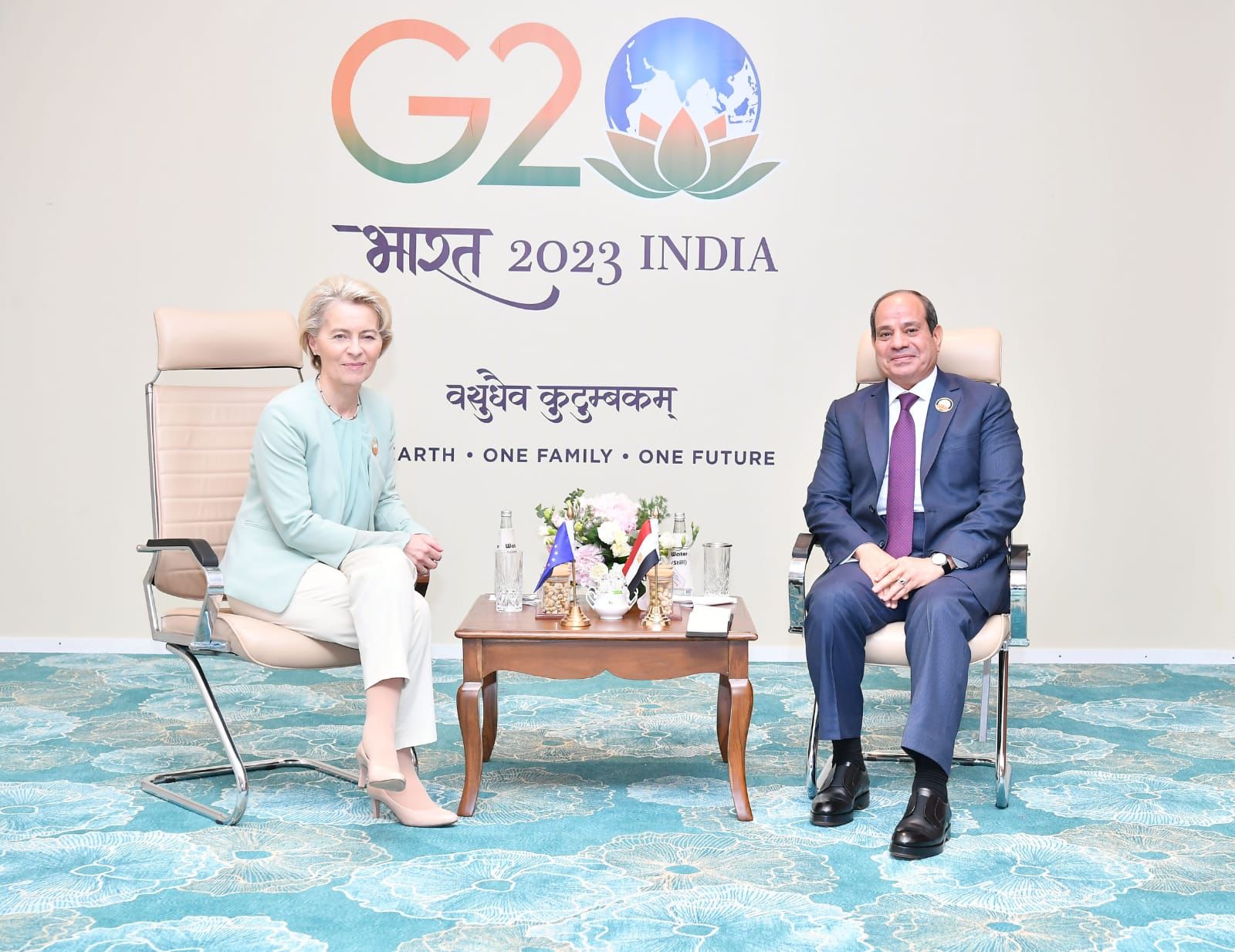 كما التقي الرئيس عبد الفتاح السيسي اليوم مع السيدة أورسولا فون ديرلاين، رئيسة المفوضية الأوروبية، وذلك على هامش انعقاد انعقاد قمة مجموعة العشرين بالهند.
