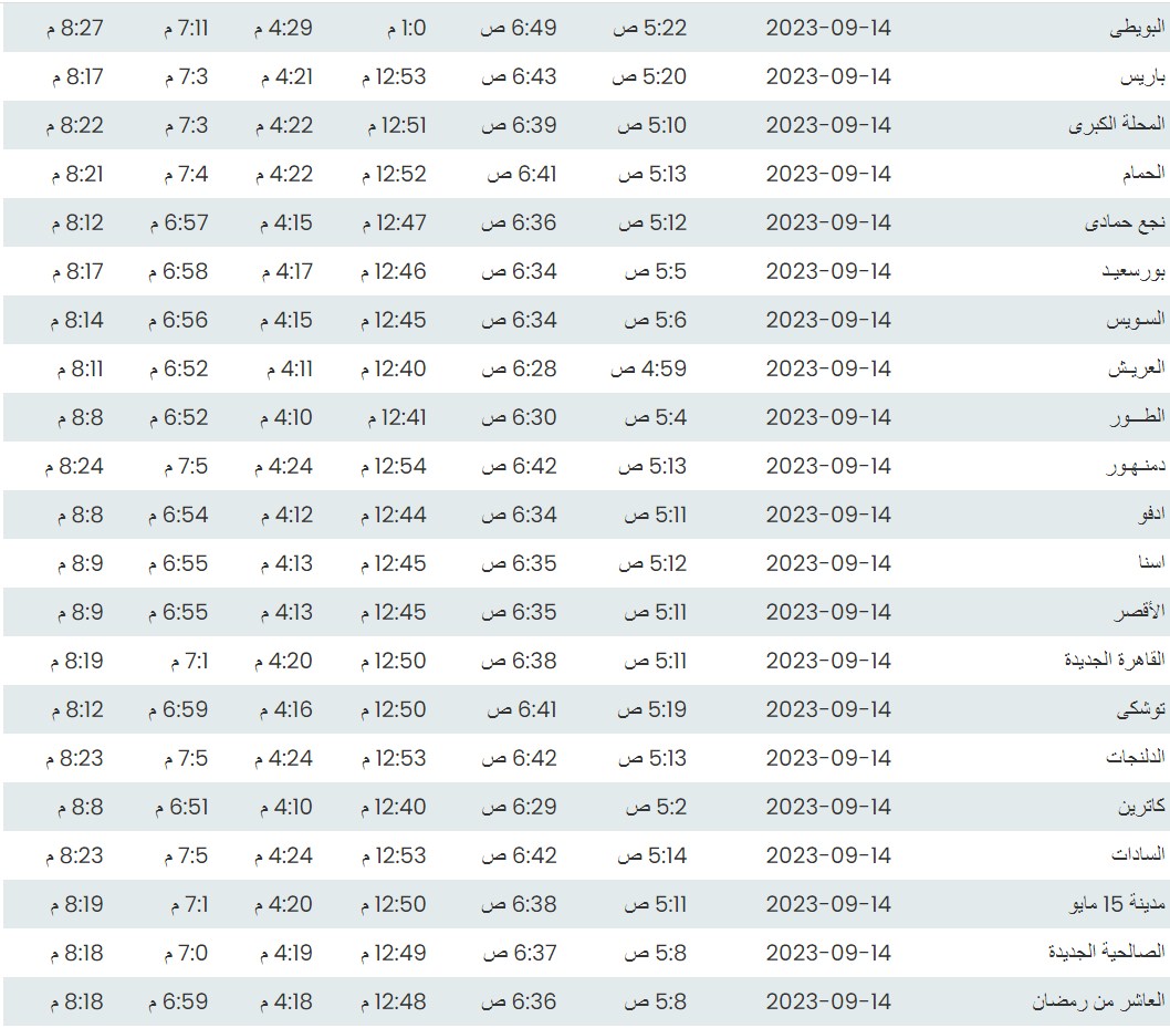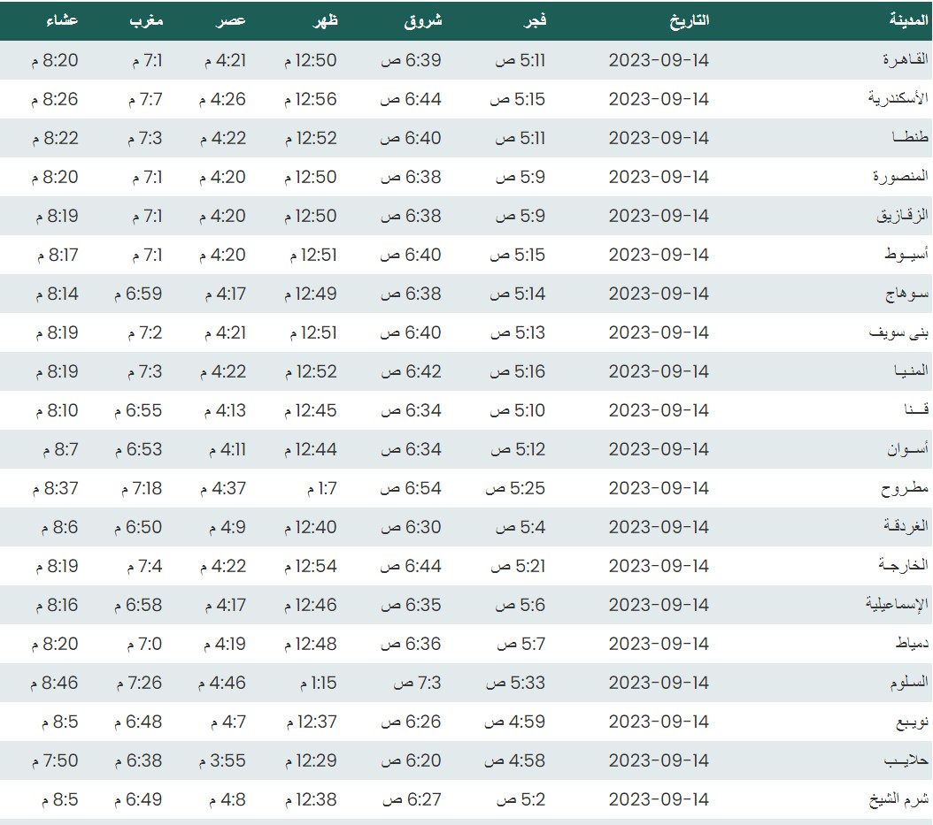 مواقيت الصلاة اليوم بتوقيت القاهرة