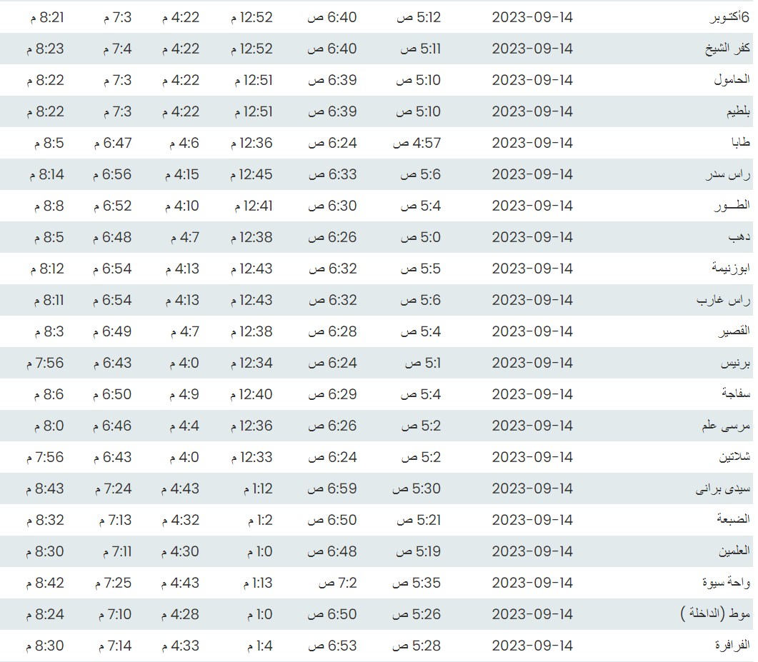 مواقيت الصلاة اليوم بتوقيت أسيوط