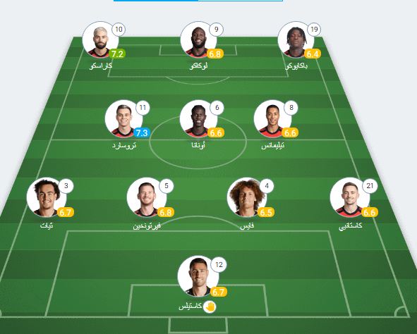 خط الهجوم: باكايوكو، لوكاكو، كاراسكو.